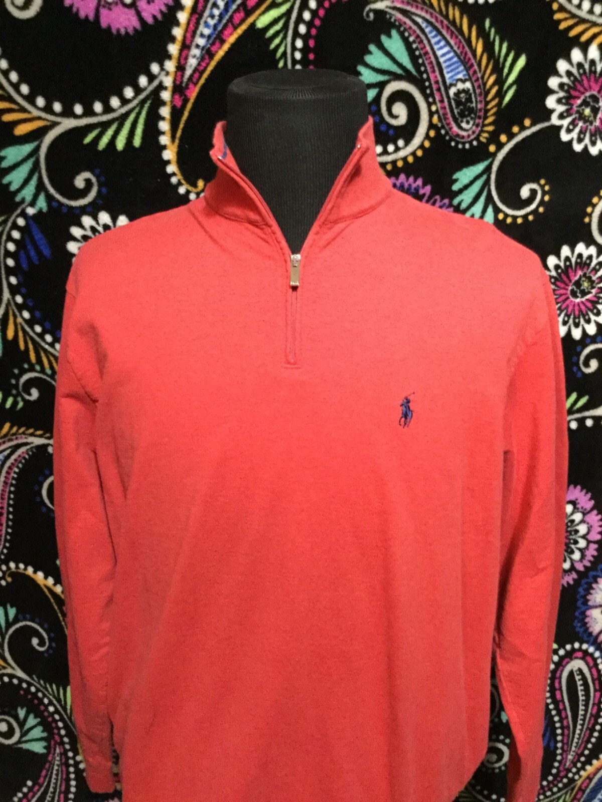 Polo Ralph Lauren Sweater Mens L Red 1/4 Zip Pullover Mock Neck Blue Pony