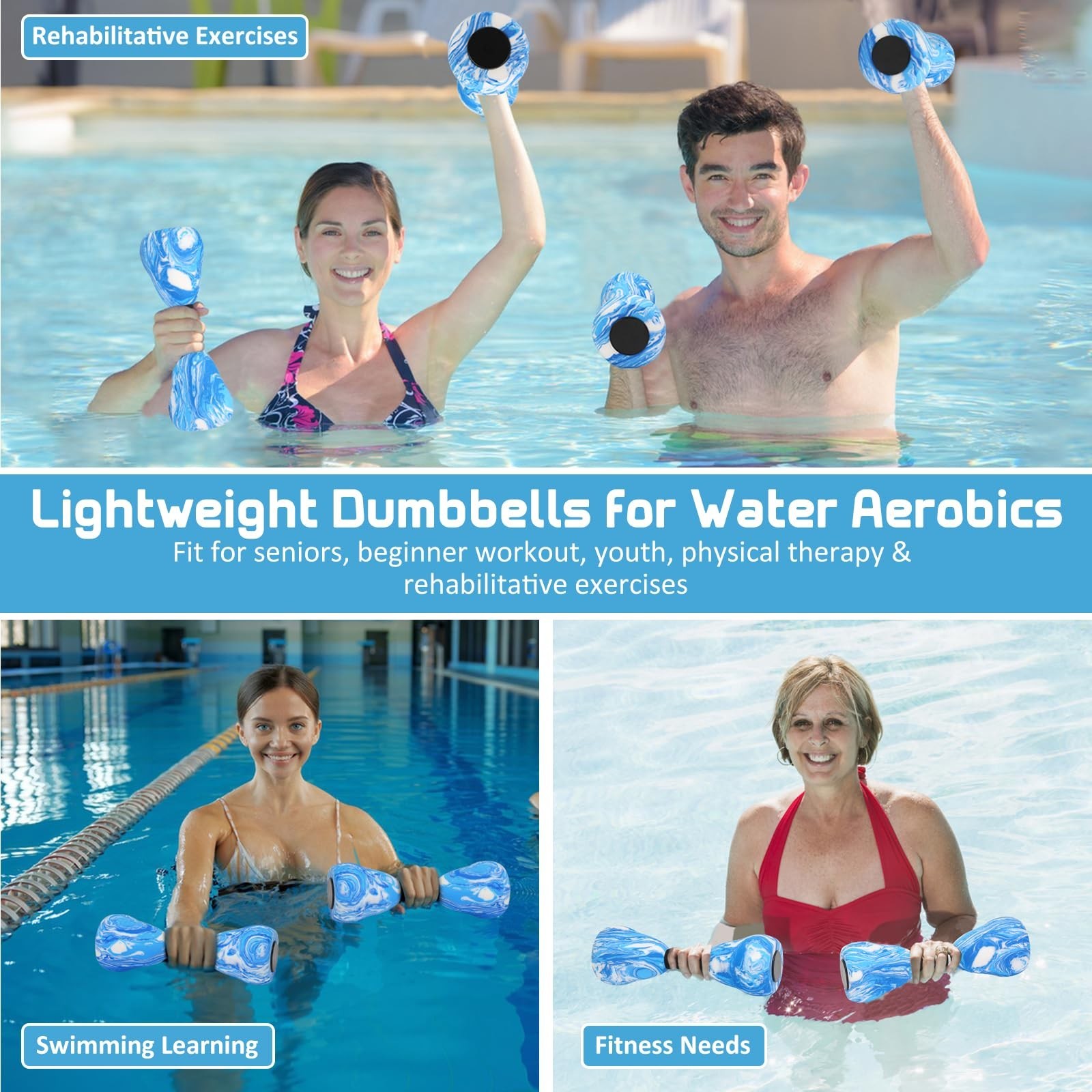 2PACK Aquatic Exercise Dumbbells, EVA Foam Barbells, Water Weights for Pool E...