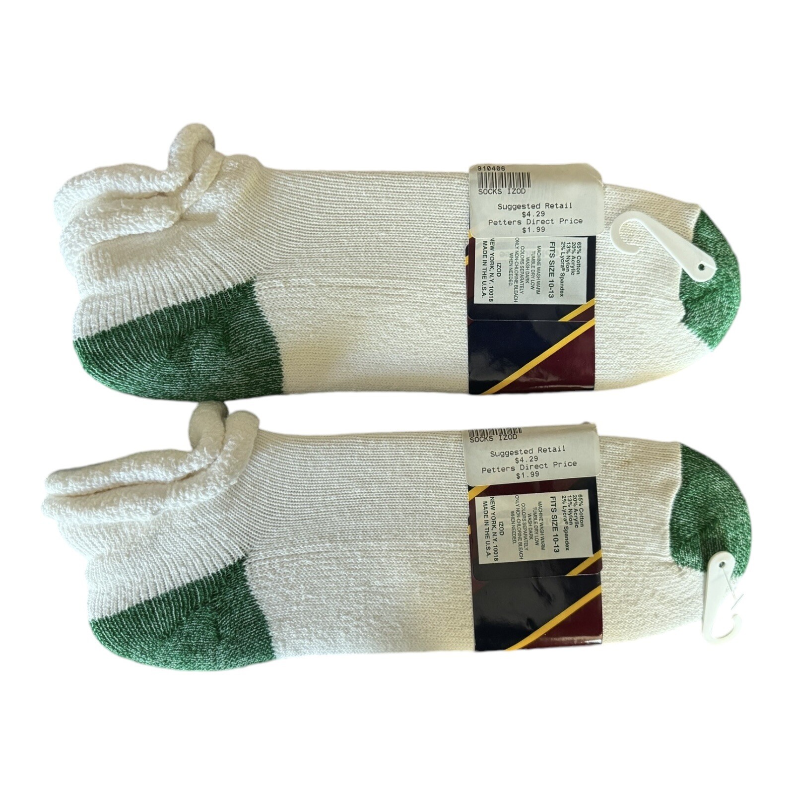 Izod Golf Tennis Socks Fits Men size 10-13 Low Cut Rollover White Green VINTAGE