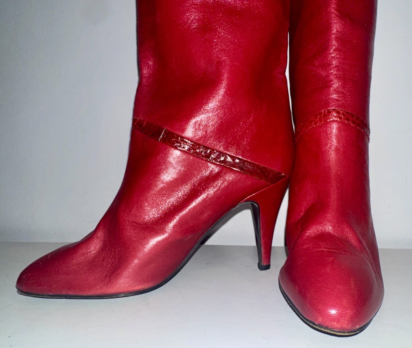 Vtg 70s Sz 6.5 7 Cherry Red Leather Snakeskin Dress Boots Barefoot Originals 80s