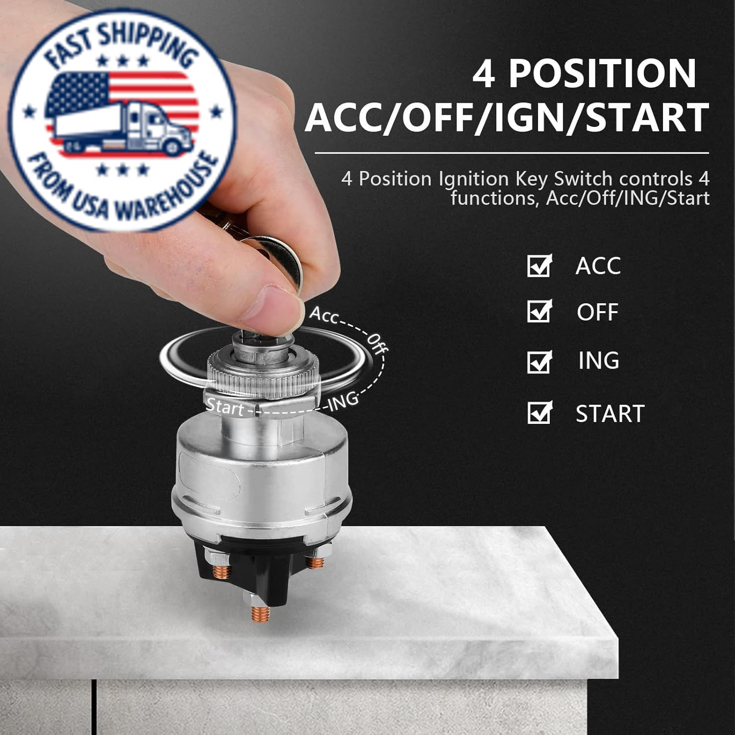 Ignition Switch with Key, 4 Position Universal Key 12v for...