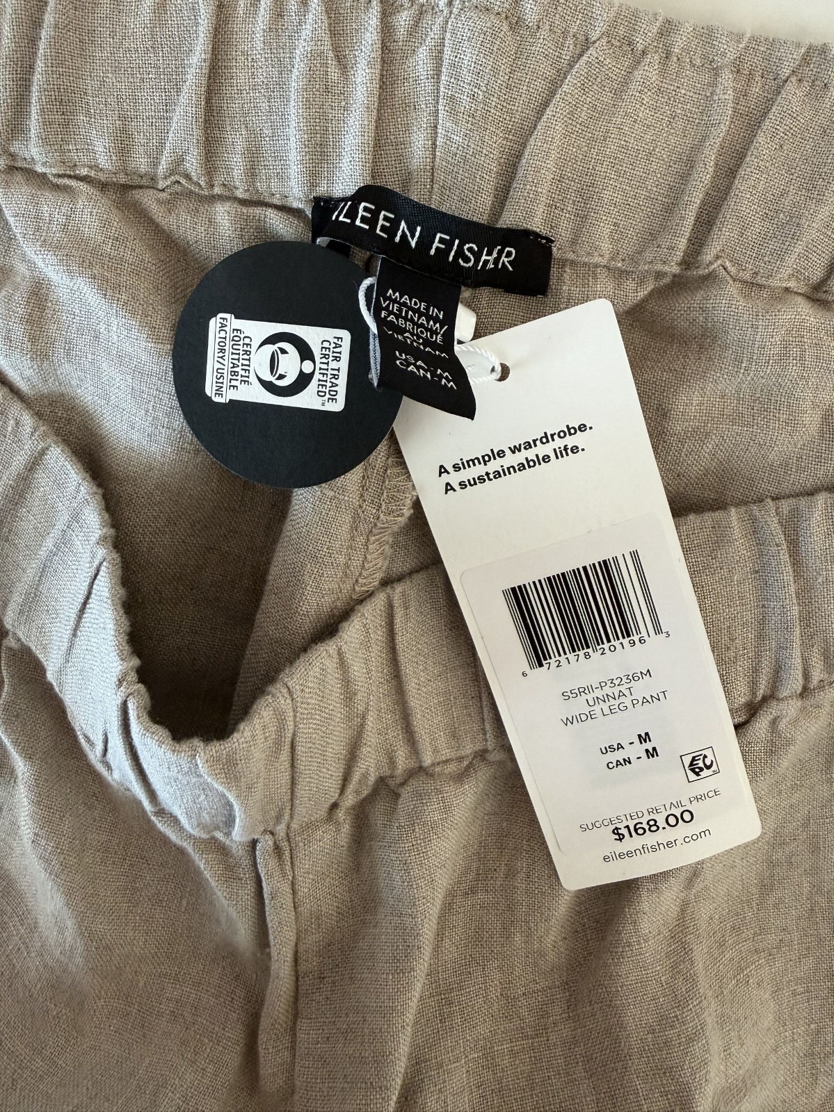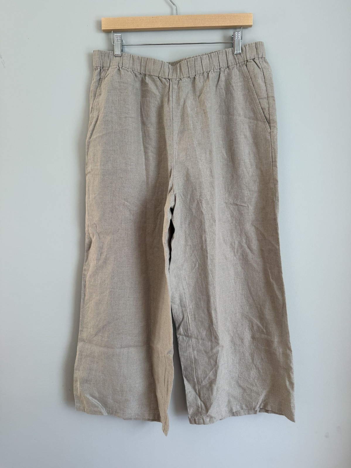 NWT Eileen Fisher Linen Cropped Wide Leg Pants Beige Size Medium 168 jb