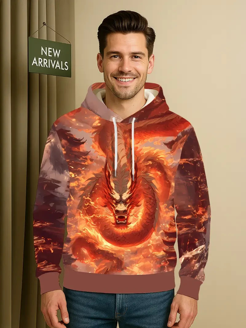 3D Fire Dragon Hoodie Inferno Serpent Mythical Beast Graphic Pullover Sweatshirt
