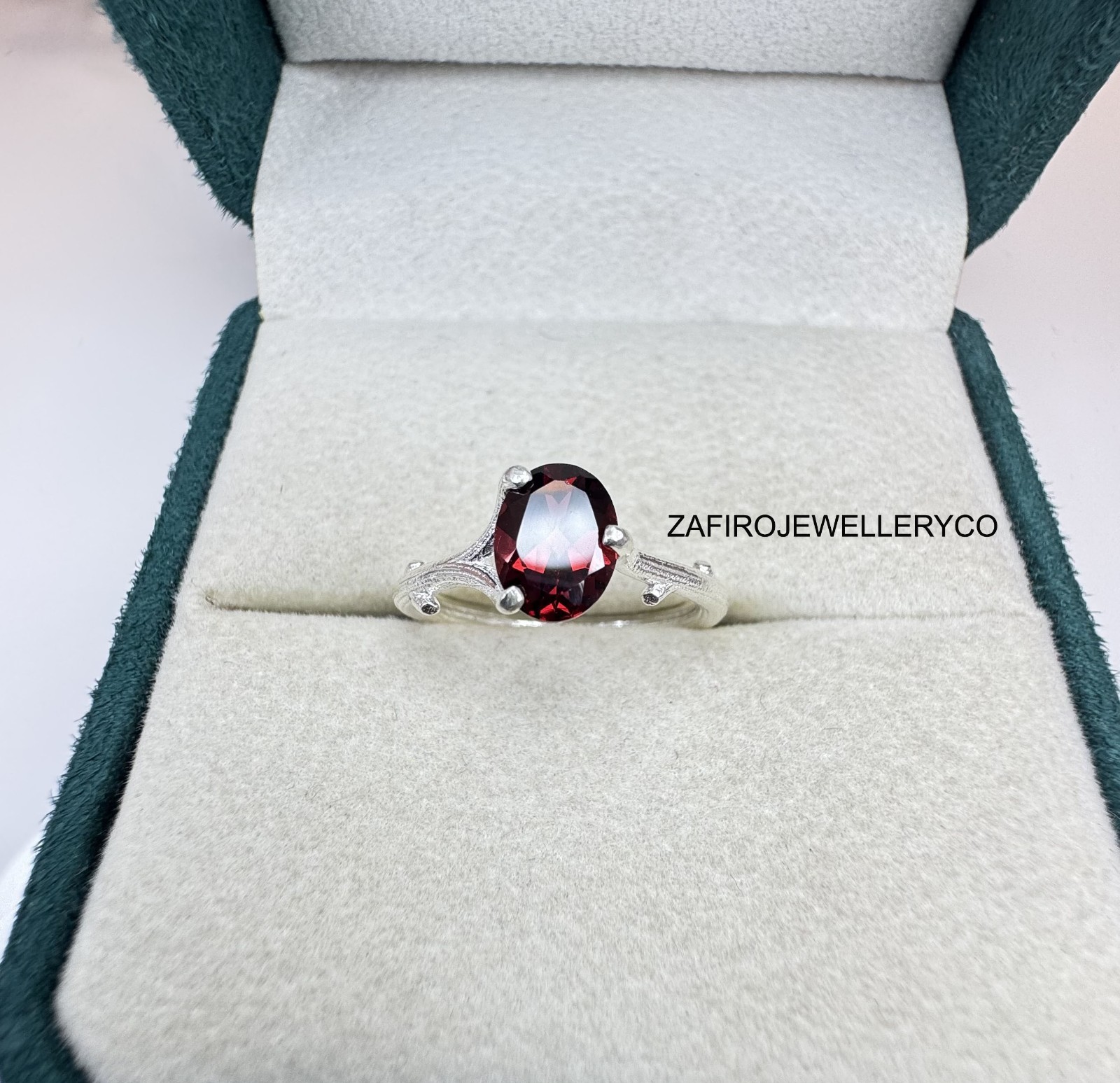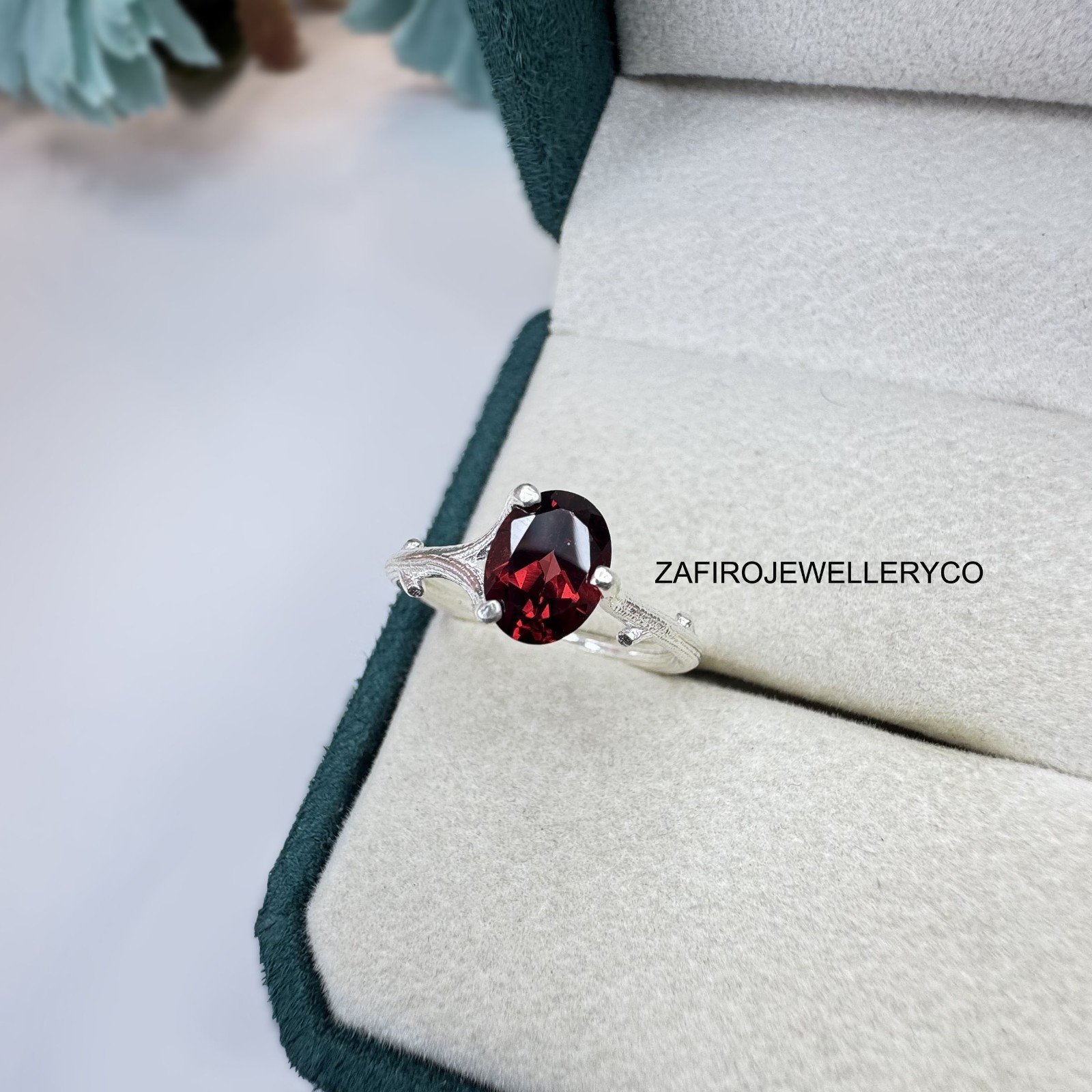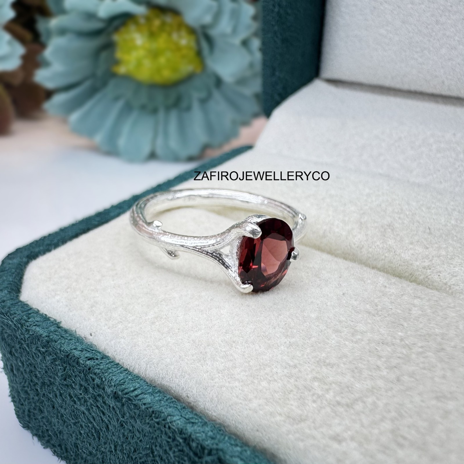 как выглядит Garnet Ring, 925 Sterling Silver, Anniversary Ring, Solitaire Ring фото