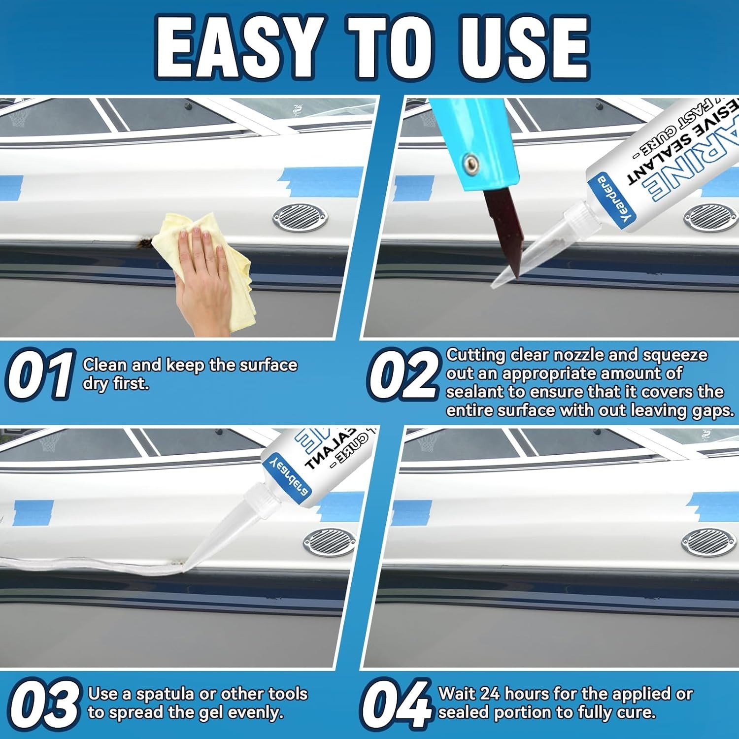 3.38 oz Marine Adhesive Sealant White, Marine Silicone Sealant Permanent, Marine