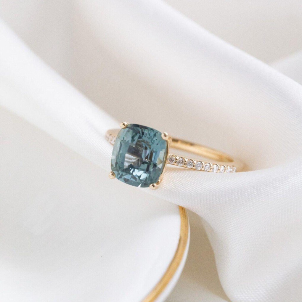 как выглядит 925 Silver Blue Topaz Gem CZ Accents Engagement Ring 14k Yellow Gold Plated фото