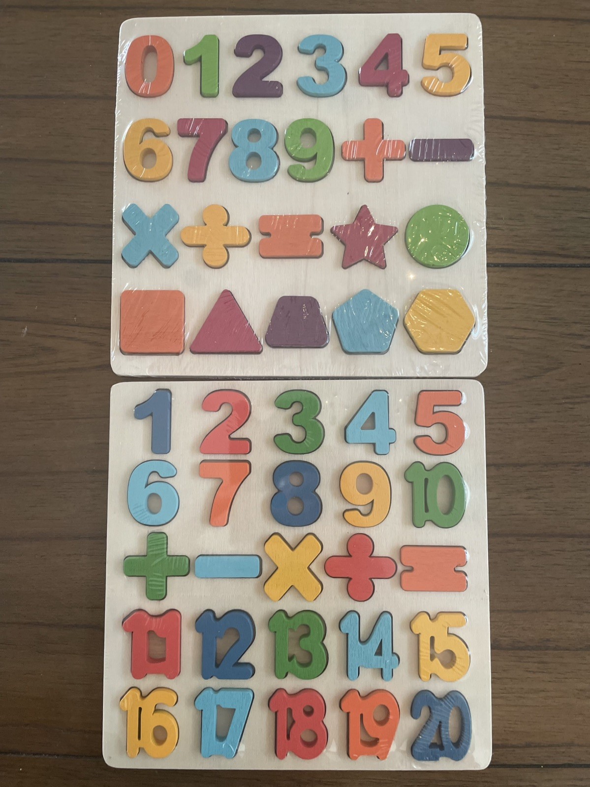 как выглядит 6 Montessori Wooden Alphabet, Numbers, Shape Puzzles- Fun Learning for Toddlers фото