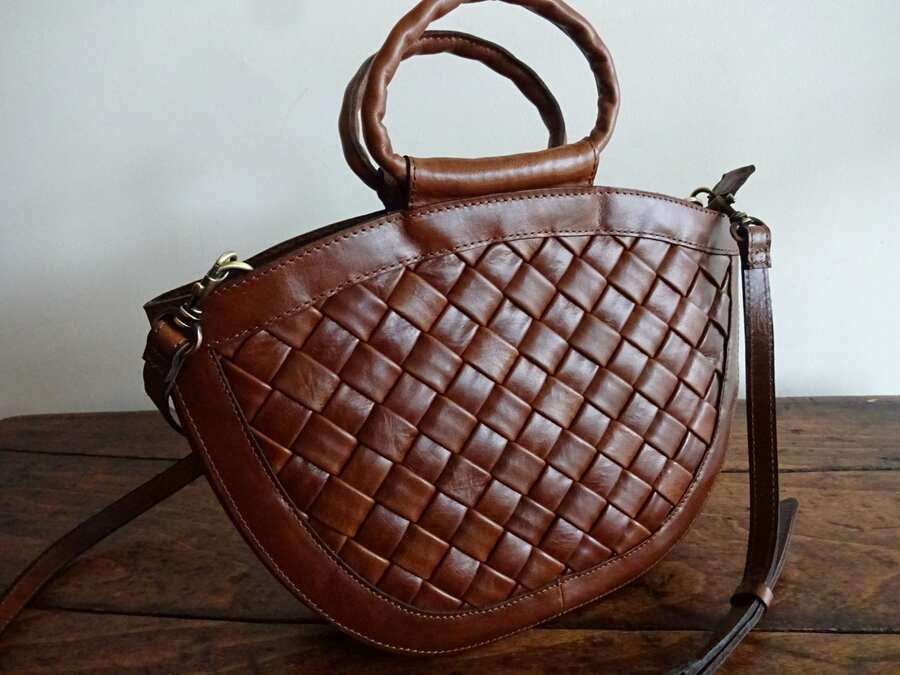 как выглядит PATRICIA NASH Vintage Distressed WOVEN COGNAC Brown LEATHER Ossi SATCHEL XBDY фото