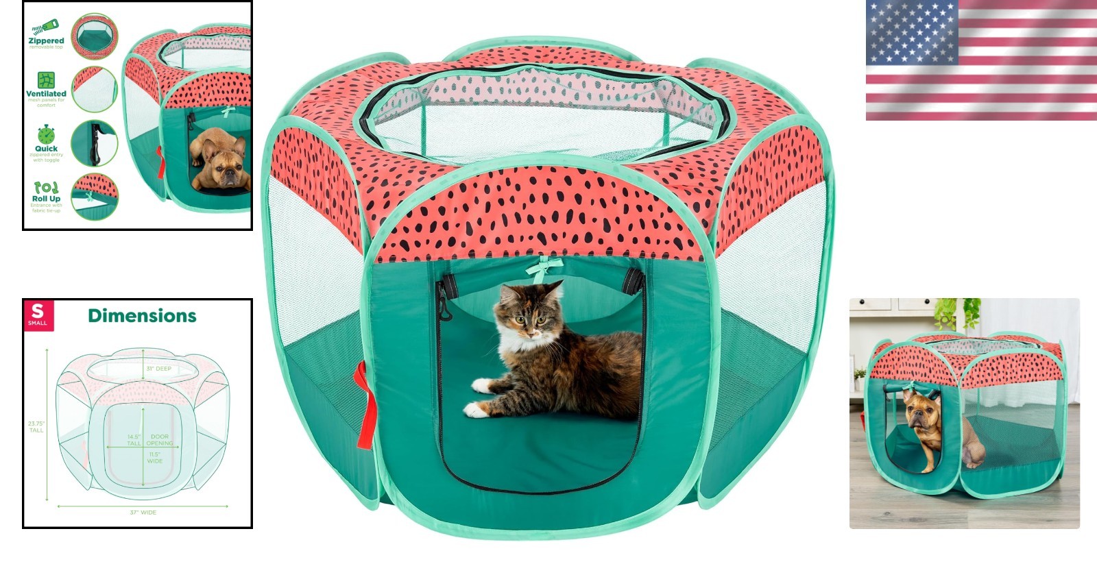 Travel-Friendly Dog Playpen - Green Pink Pop-Up Pet Tent for Small Animals