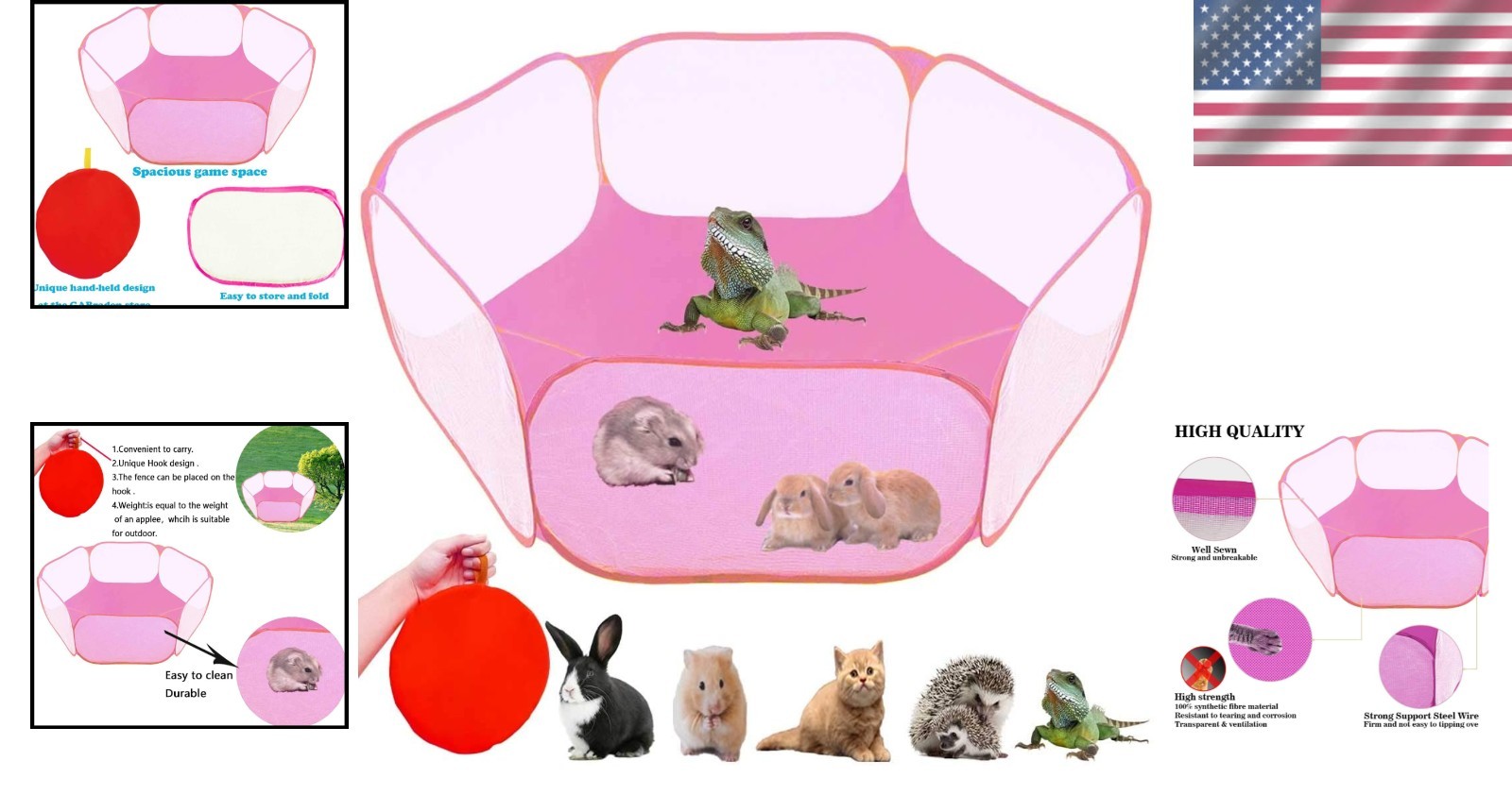 Portable Pink Breathable Pet Playpen for Small Animals - Indoor/Outdoor Use