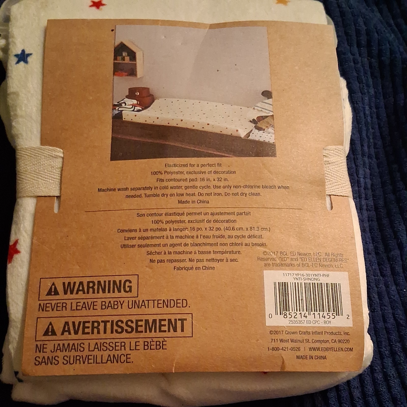 как выглядит NWT Ellen Degeneres White Stars Baby Contoured Changing Pad Cover 16in X 32in фото