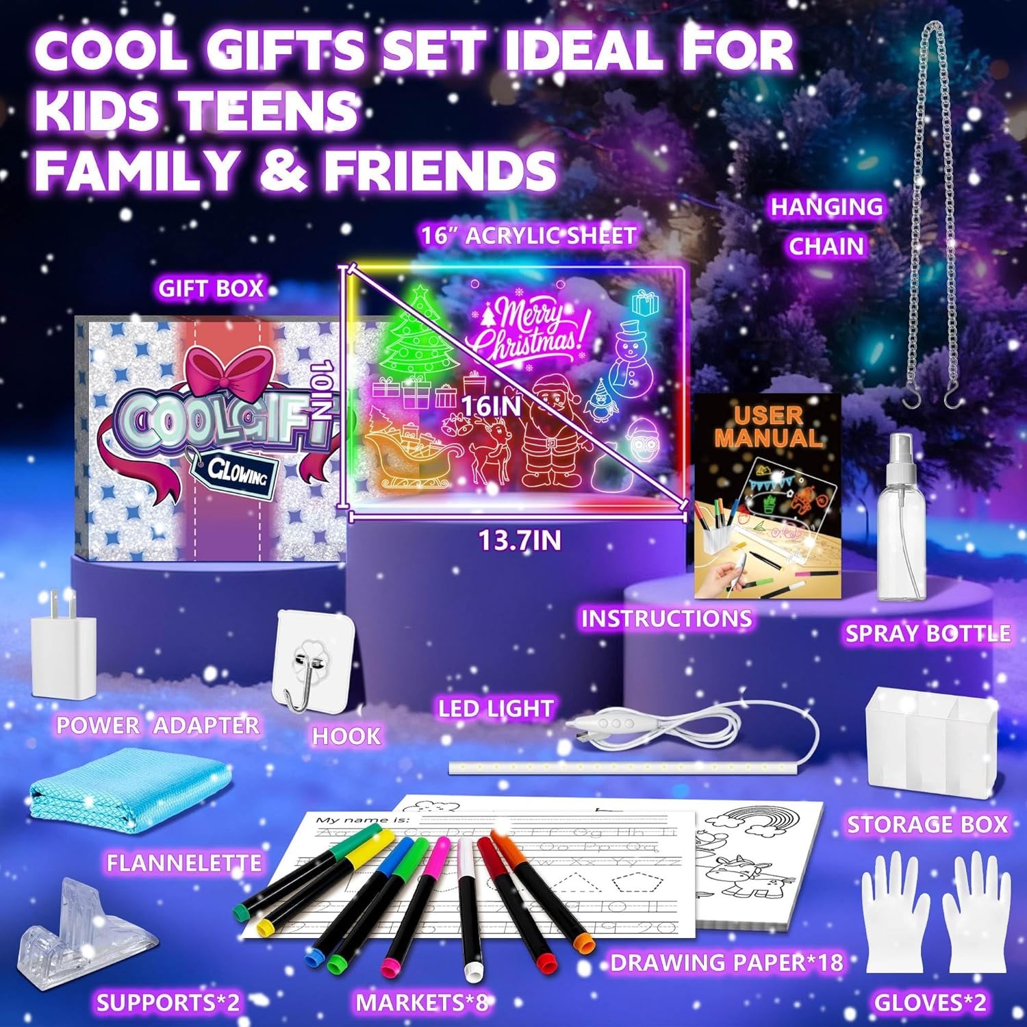 LED Drawing Board 16 Inch w/ Tracing Pages 7 Colors Kids Art 39 Pcs Set Kit Gift