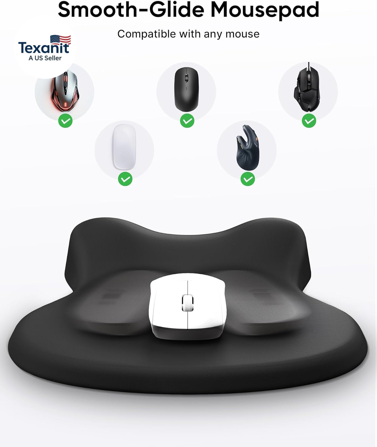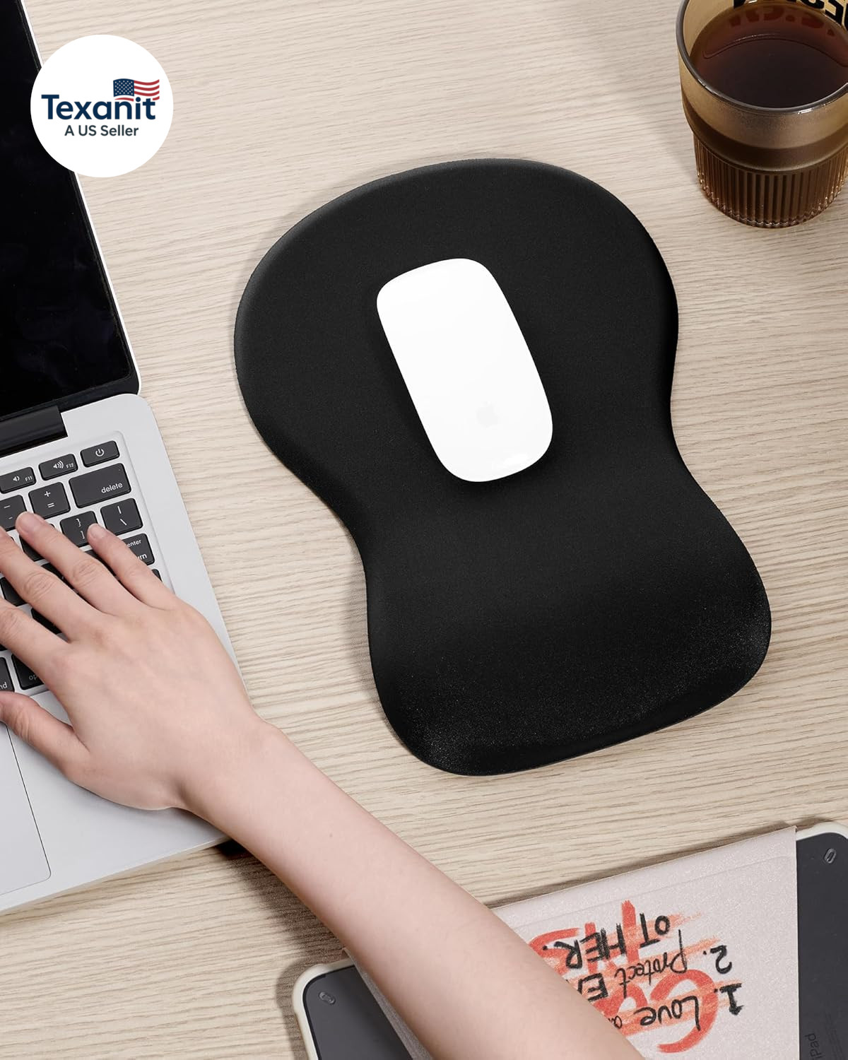 Ergonomic Mouse Pad with Wrist Rest, Black Mousepad with Wrist Support, Non-Slip