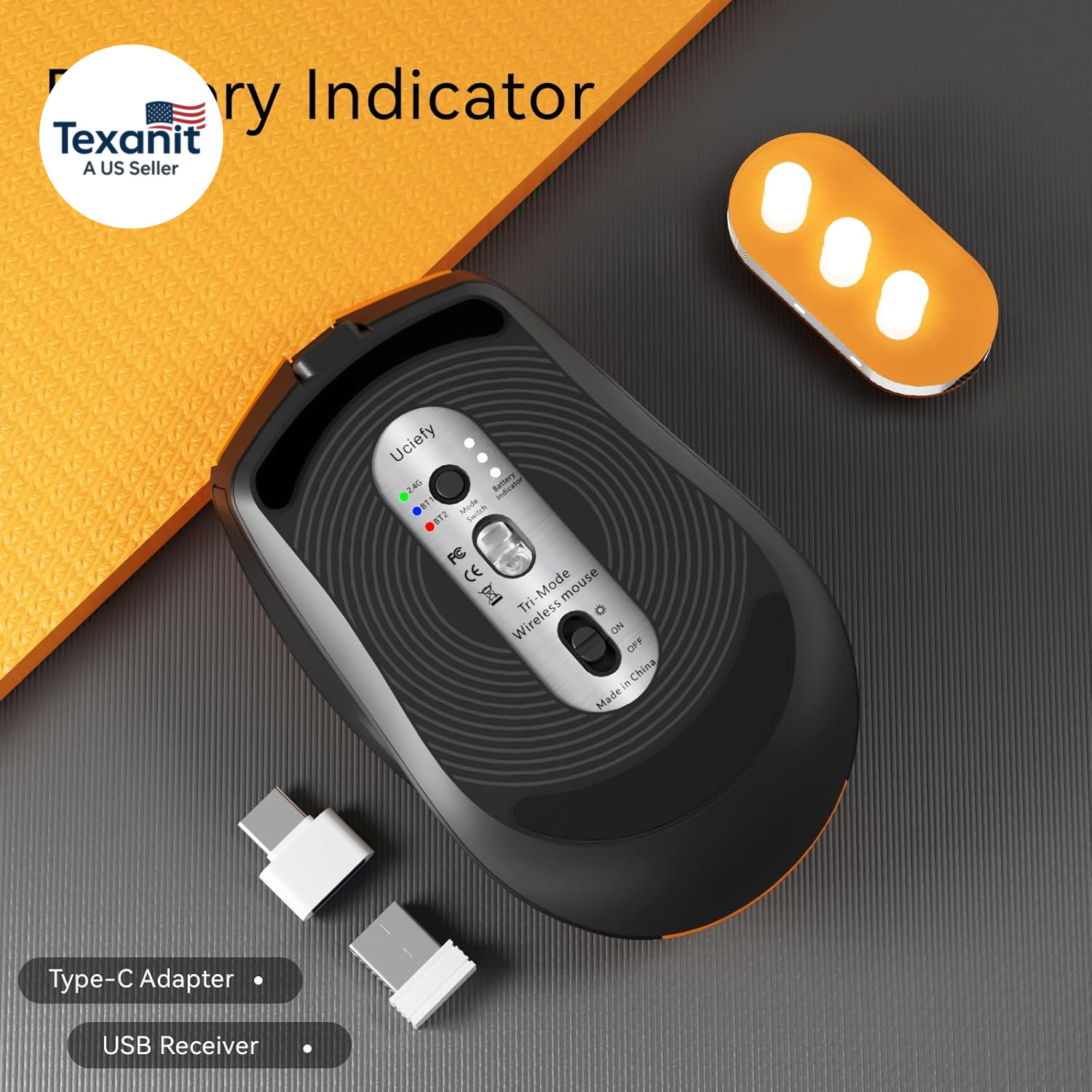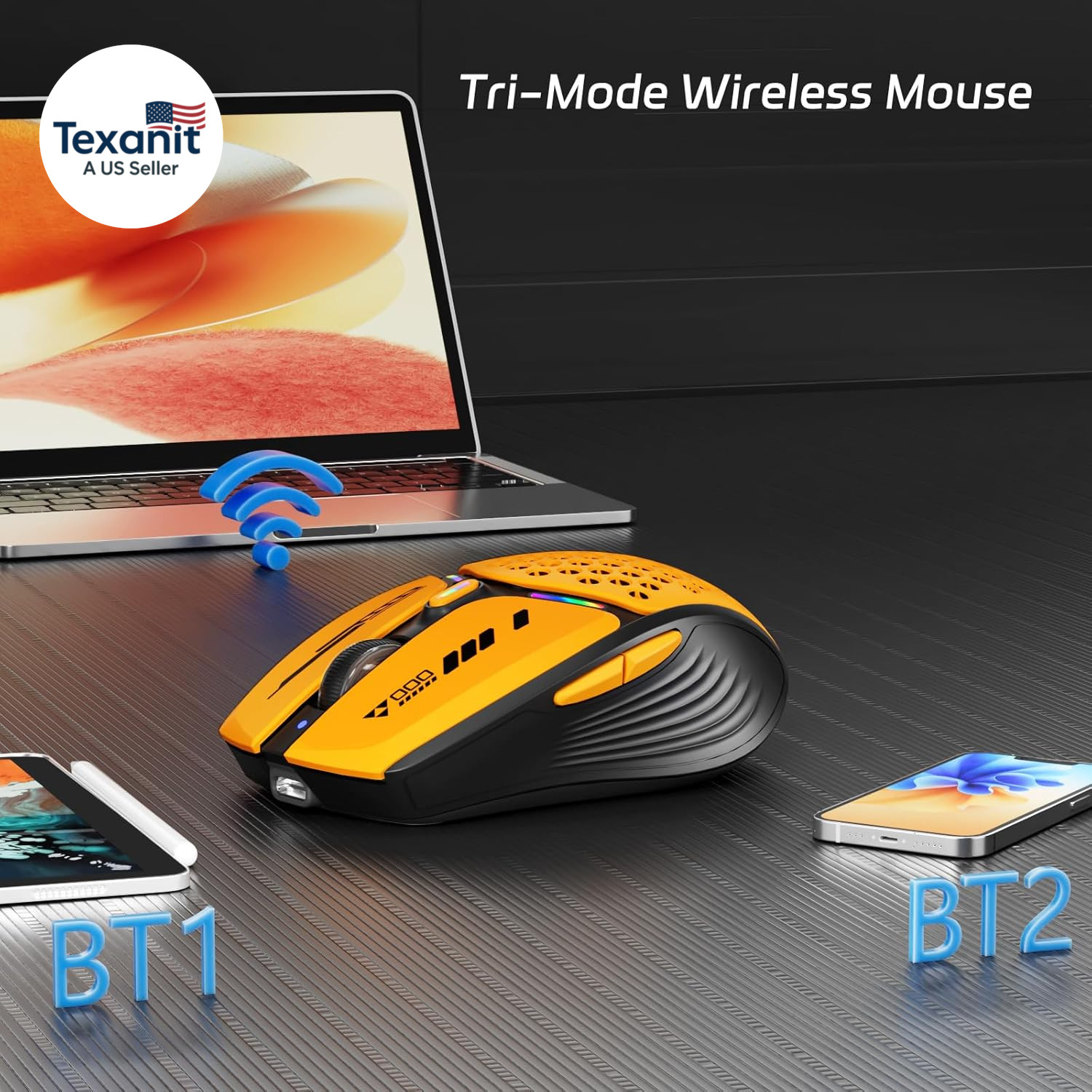 Bluetooth Wireless Mouse, Bt5.0/5.1 2.4Ghz USB C Rechargeable LED Mouse Batter