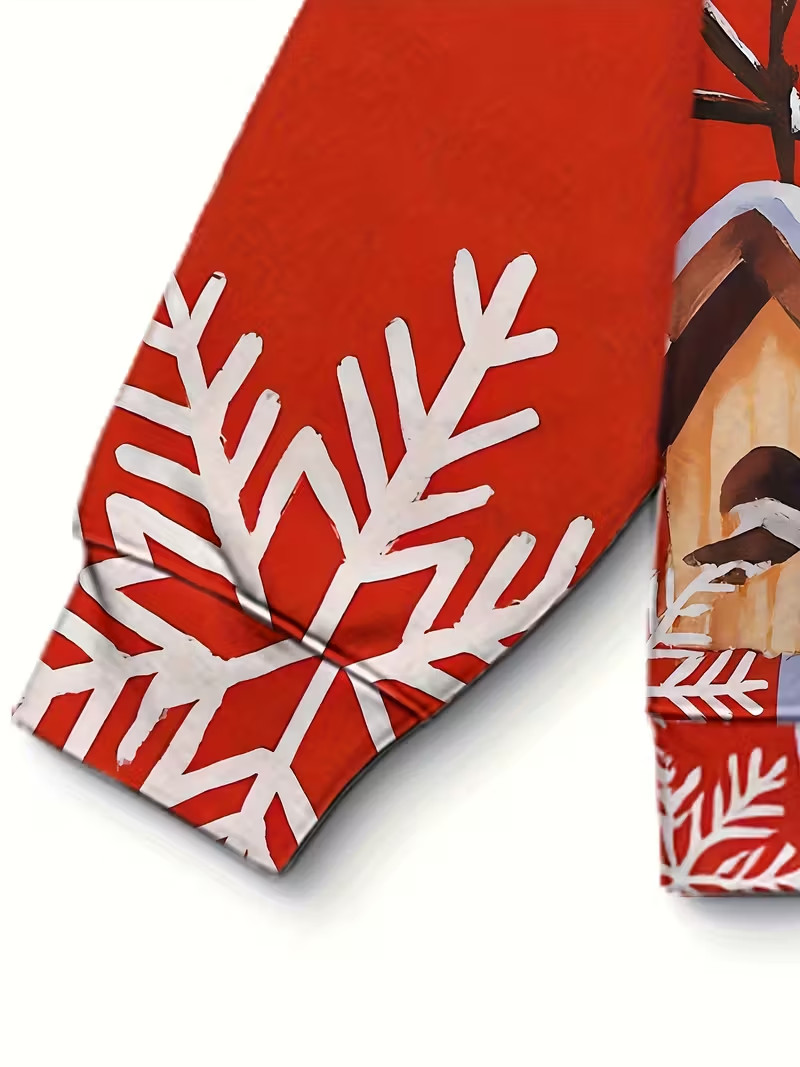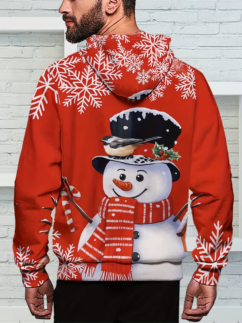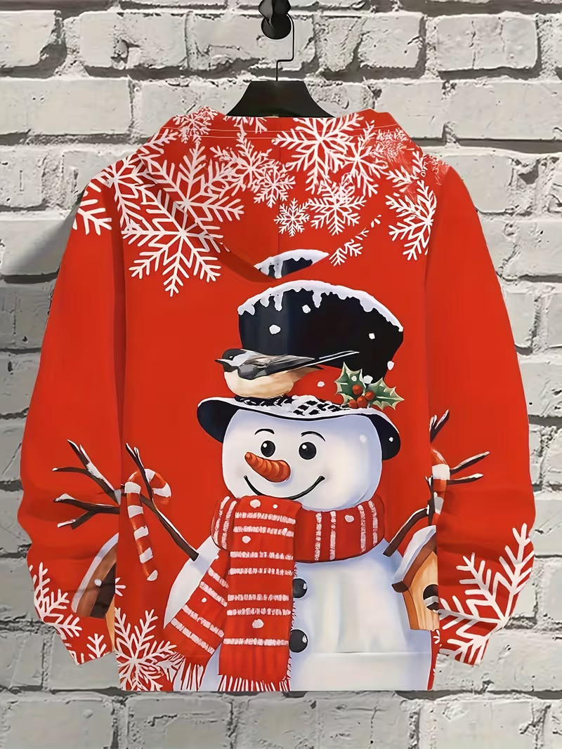 Snowman Christmas Hoodie Red Winter Holiday Snowflake Print Festive Unisex