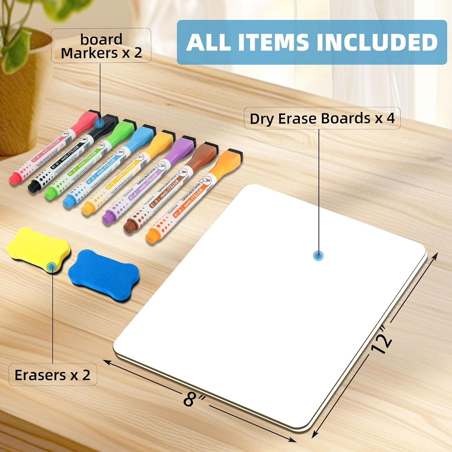 4-Pack Magnetic Dry Erase Board Sheets with Erasers and Markers for Kitchen