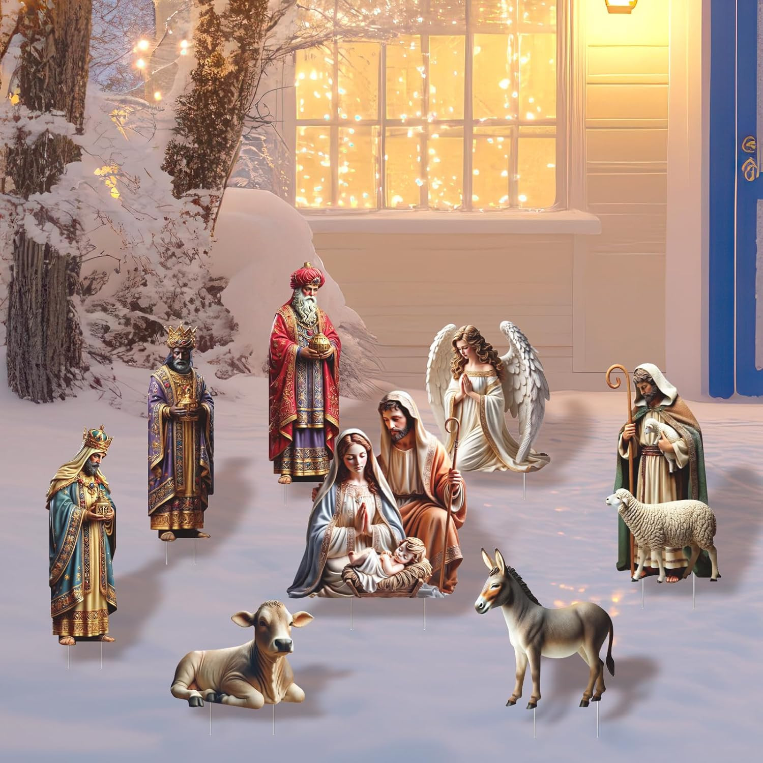 как выглядит Outdoor Nativity Scene Yard Signs with Stakes for Christmas Lawn Decor фото