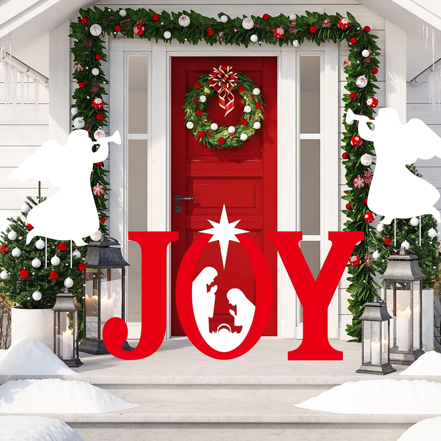 Large JOY Nativity Christmas Yard Signs with Stakes - 5 Piece Outdoor Decor