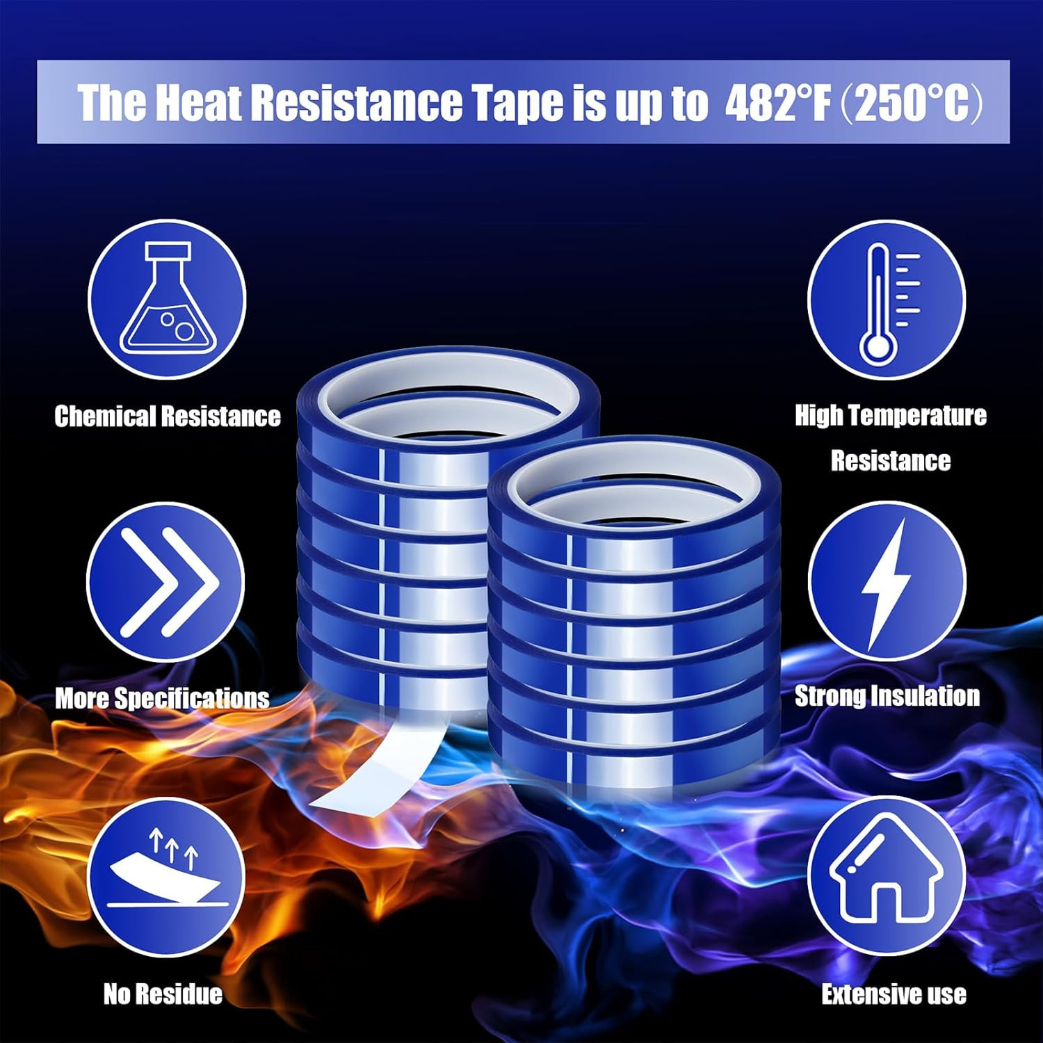 12 Rolls 10mm x33m 108ft Blue Heat Tape High Temperature Heat Resistant Tape...
