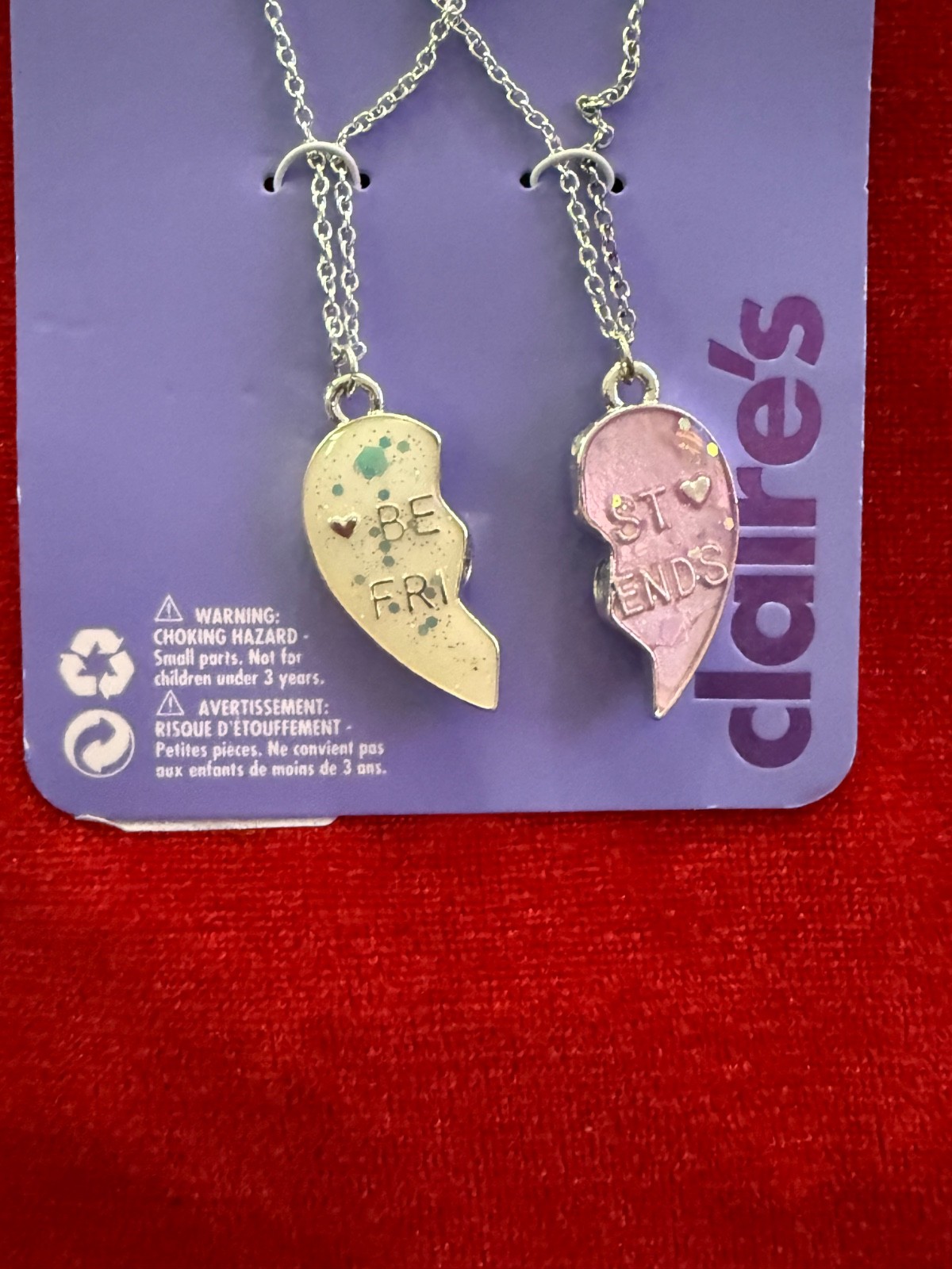 Claire s Best Friends Purple Glitter Color-Changing Split Heart Necklaces new