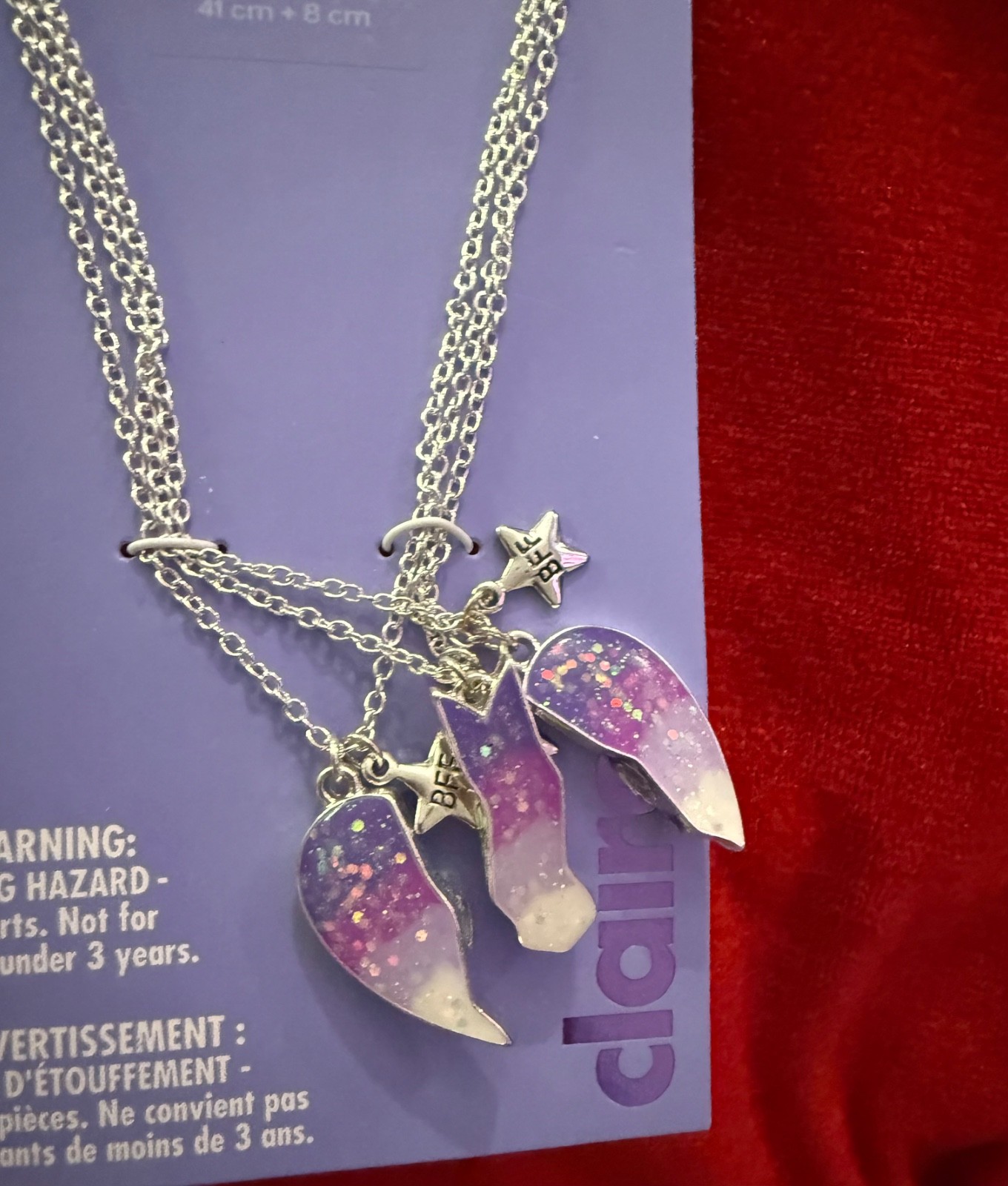 Claire s heart 3 best friends PURPLES necklaces