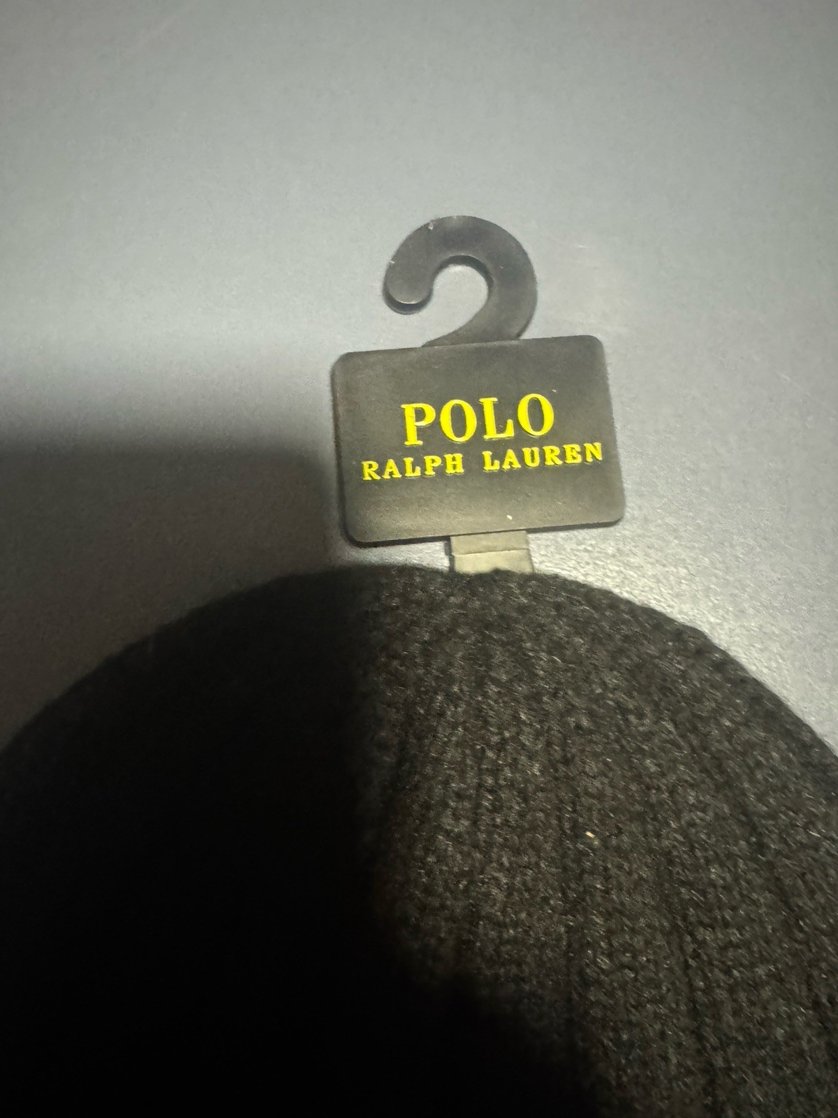 как выглядит Polo Ralph Lauren Men s Signature Merino Cuffed Beanie - Obsidian/Red фото