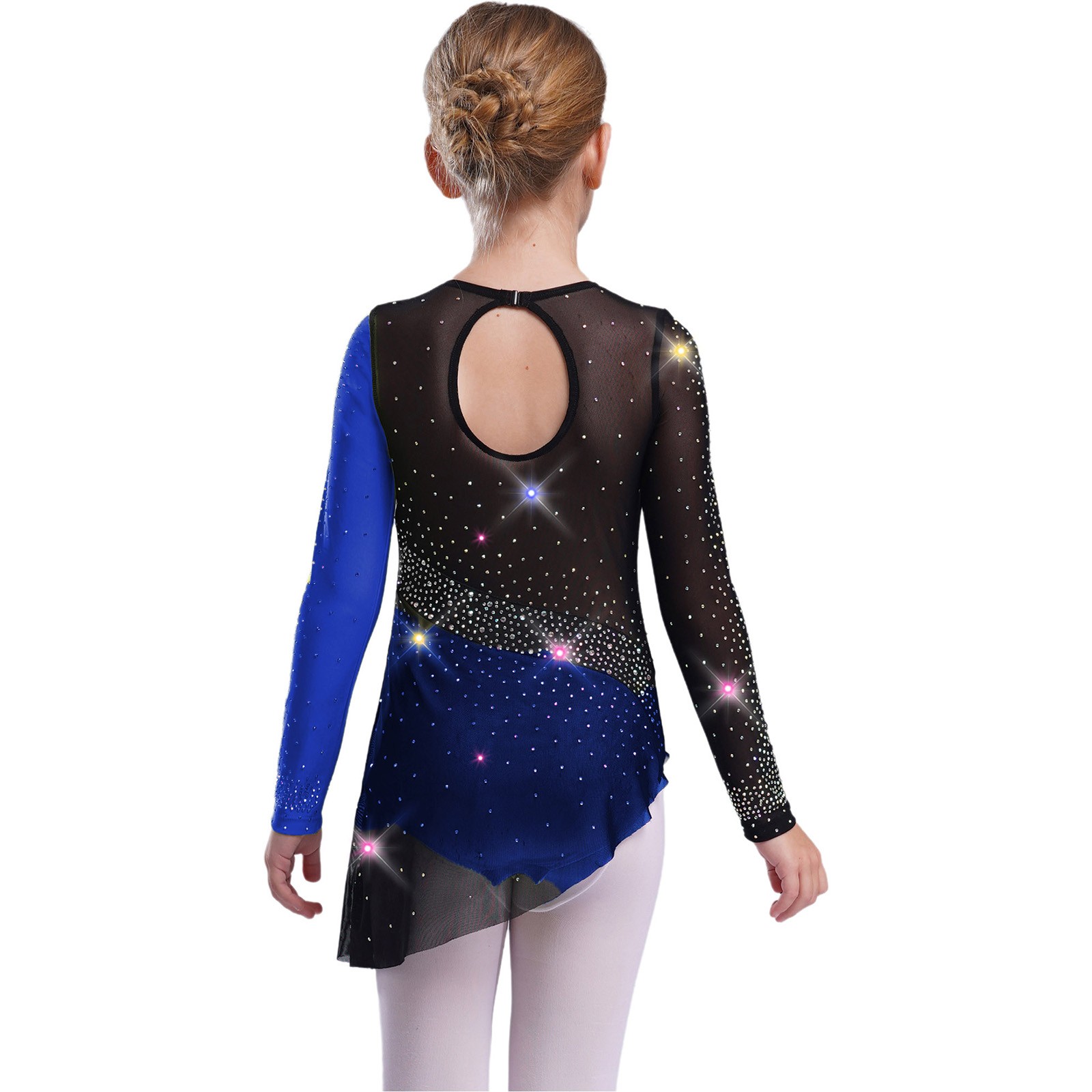 Girls Kids Sparkling Long Sleeve Figure Skating Dress Gymnastics Dance Costume