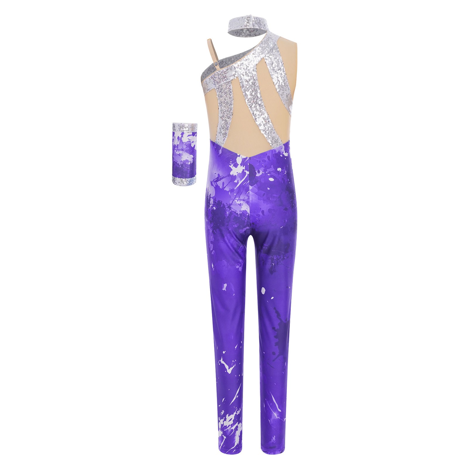 как выглядит Girls Sequins Figure Skating Sports Jumpsuit Bodysuit Gymnastics Dance Catsuit фото