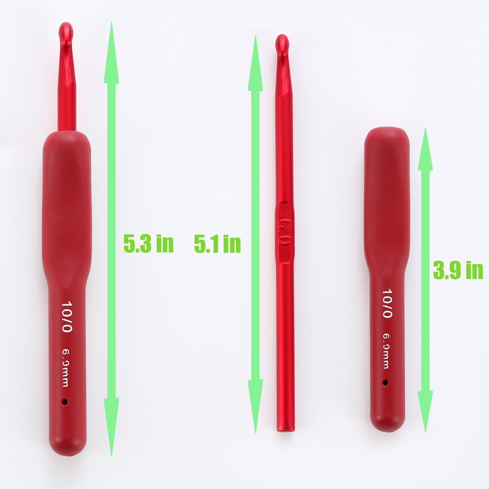OYEUYID Red Crochet Hook Set 9 Sizes 2-6mm Soft Handle Aluminum