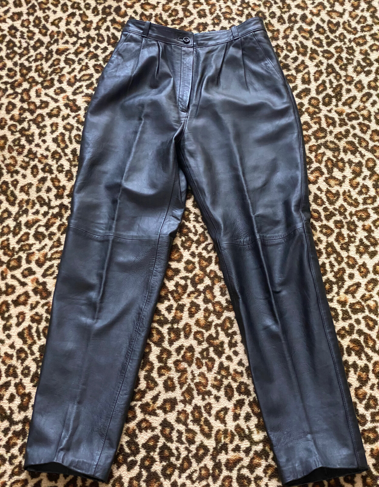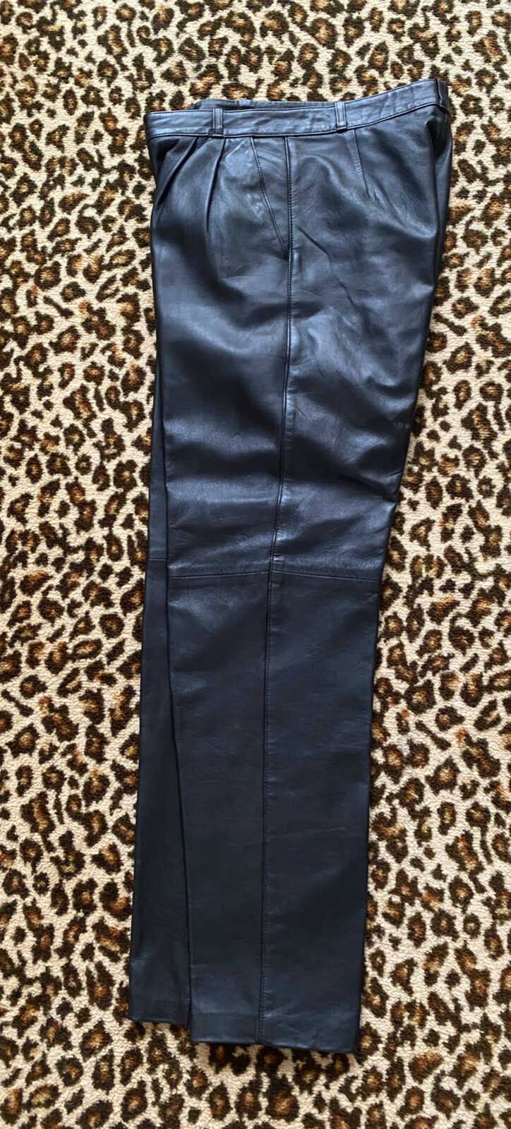 VTG 80s women Black Leather High Waist Straight leg Pant Lined size 6 M