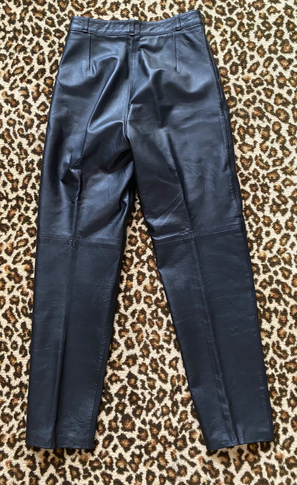 как выглядит VTG 80s women Black Leather High Waist Straight leg Pant Lined size 6 M фото