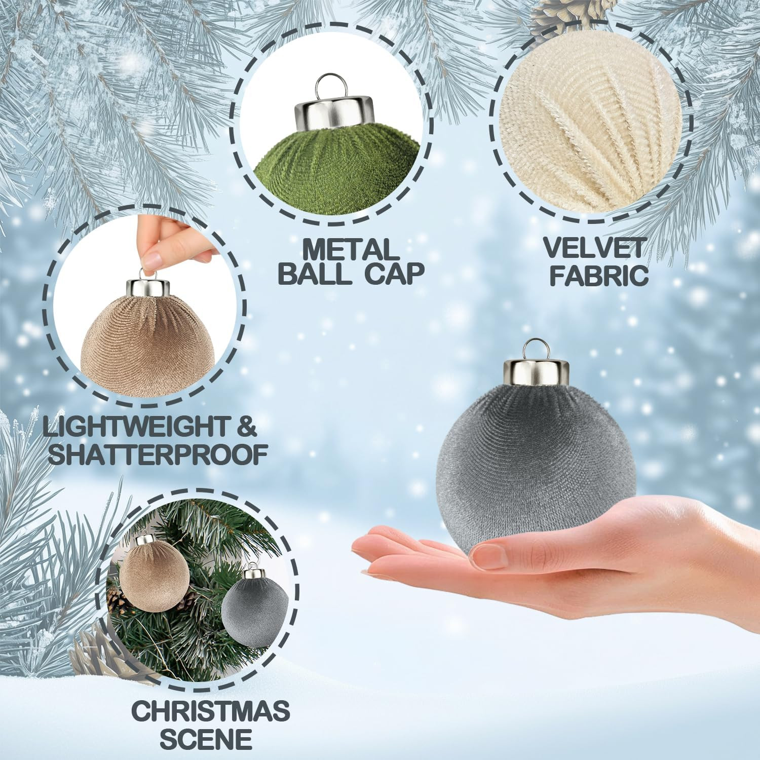 15 PCS 3.15 Inch Velvet Flocked Christmas Ball Ornaments - Shatterproof Decor