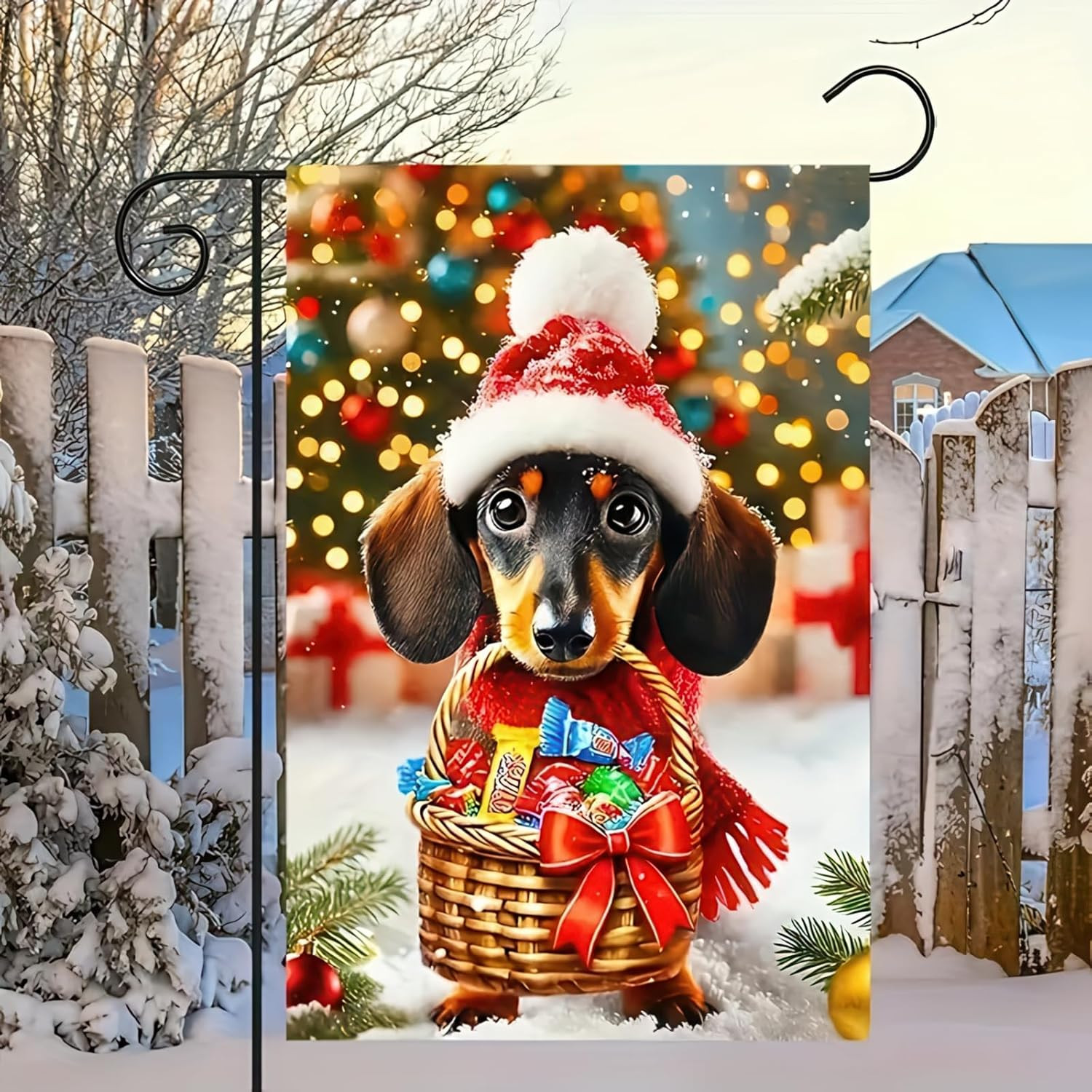 Dachshund Christmas Flag - Double Sided 12x18 Holiday Patio Decor