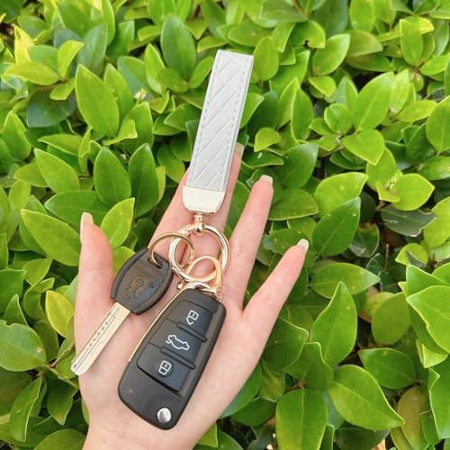 Car Keys Keychain Leather Key Chain Holder for Men and Women White gold