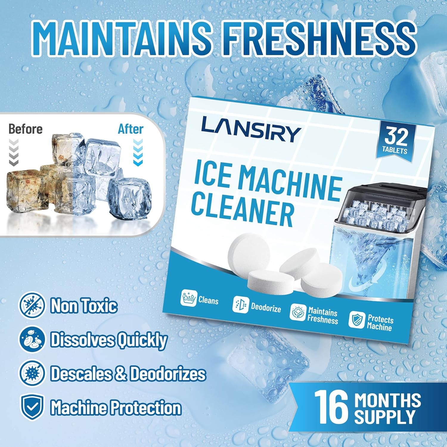 Ice Machine Cleaner Tablets and Descaler, 32 Count Ice Maker Cleaner Tablets for