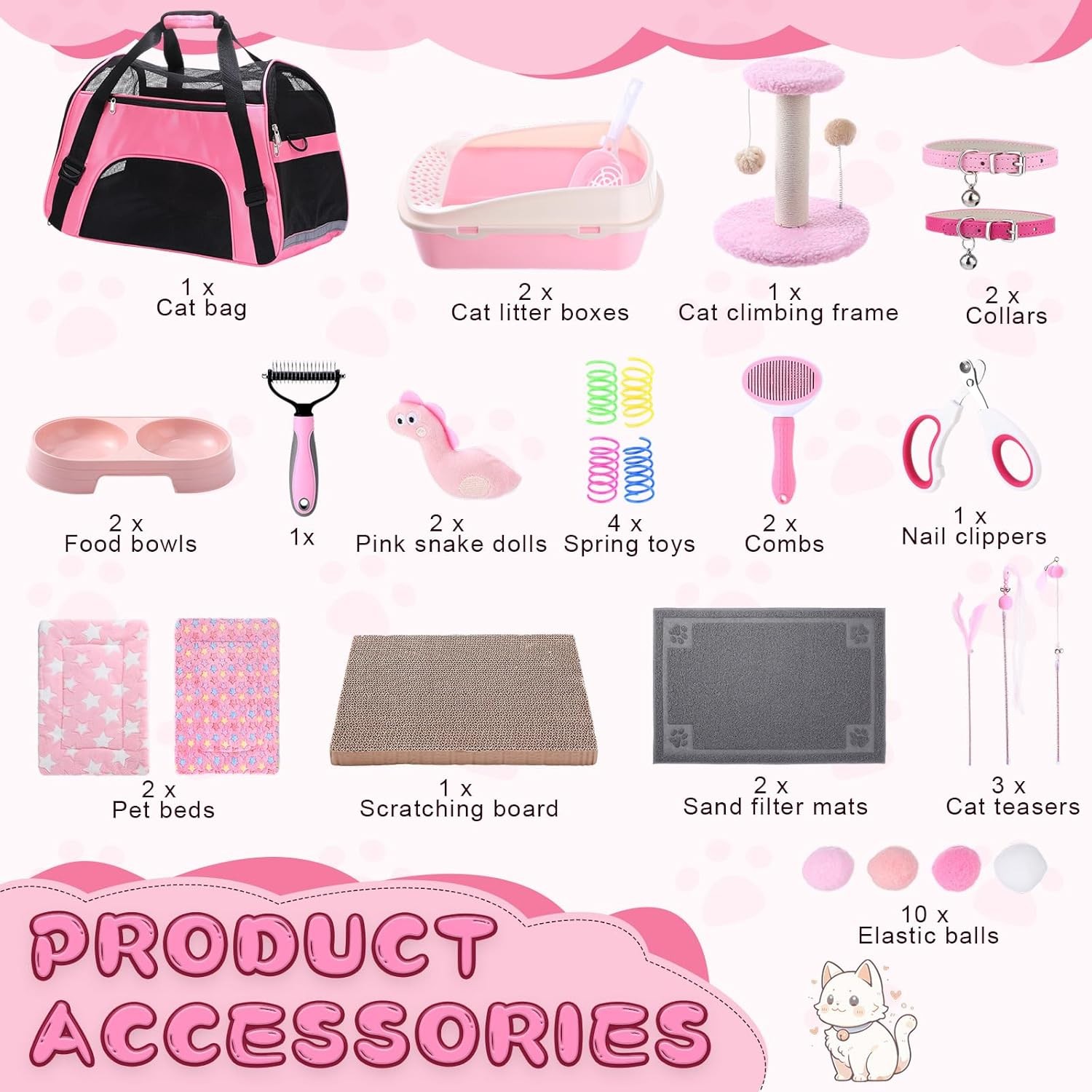 35 Pcs Kitten Starter Kit for 2 Indoor Kittens Essentials Including Carriers