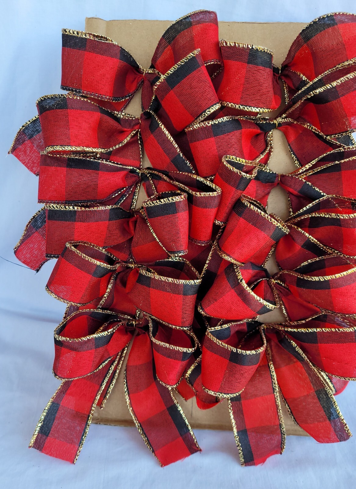 как выглядит Set of 12 Small Handmade Christmas Tree Bows Package Bows Red Tartan Design фото