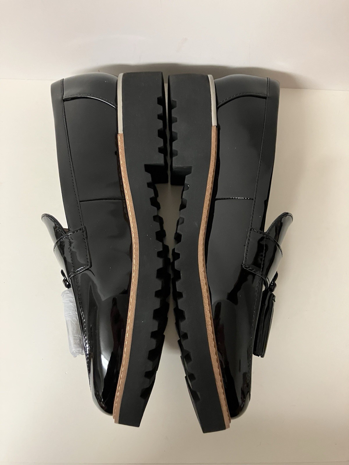 Franco Sarto Carolynn Black Patent Leather Tassel Lug Sole Loafers Women s 9M