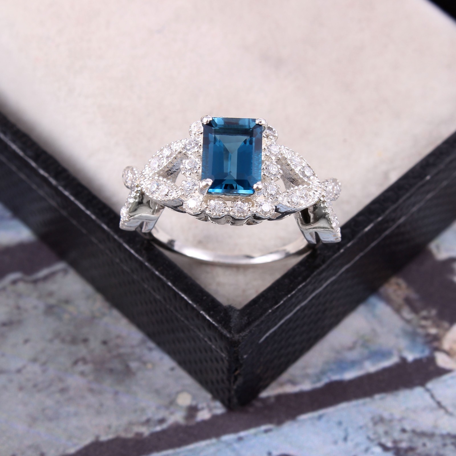 Blue Topaz Ring, 925 Sterling Silver, London Blue Topaz, Engagement Ring