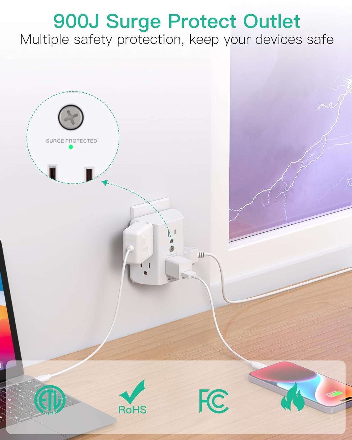 2 Pack Surge Protector Outlet Splitter 6 Plug Wall Adapter Extender 900J