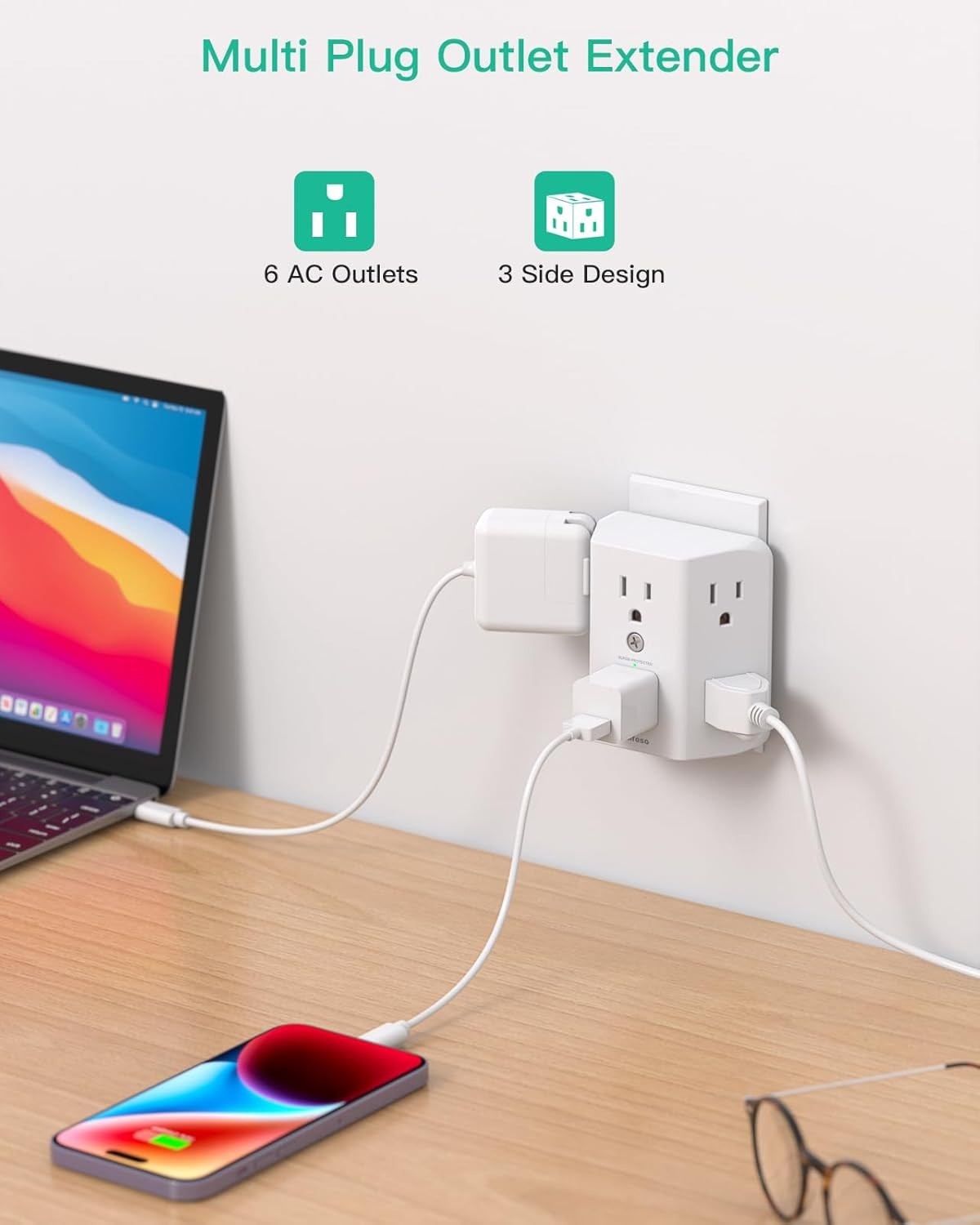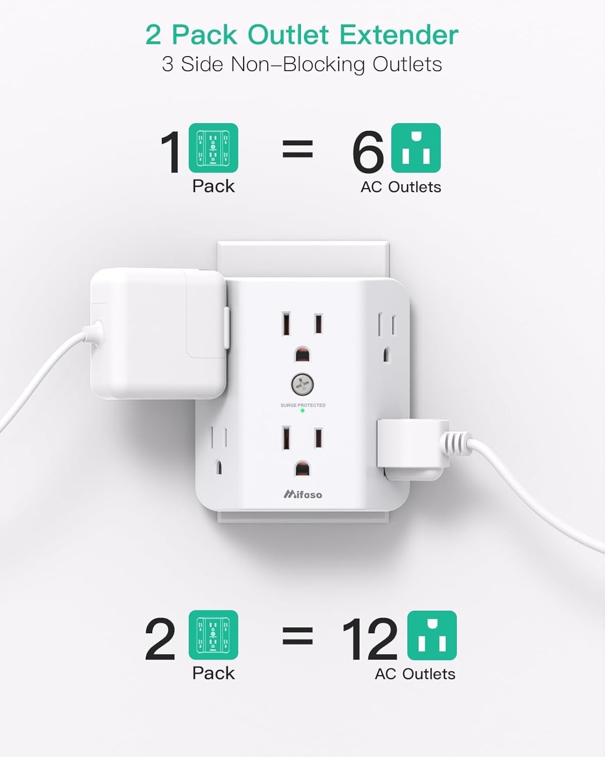 как выглядит 2 Pack Surge Protector Outlet Splitter 6 Plug Wall Adapter Extender 900J фото