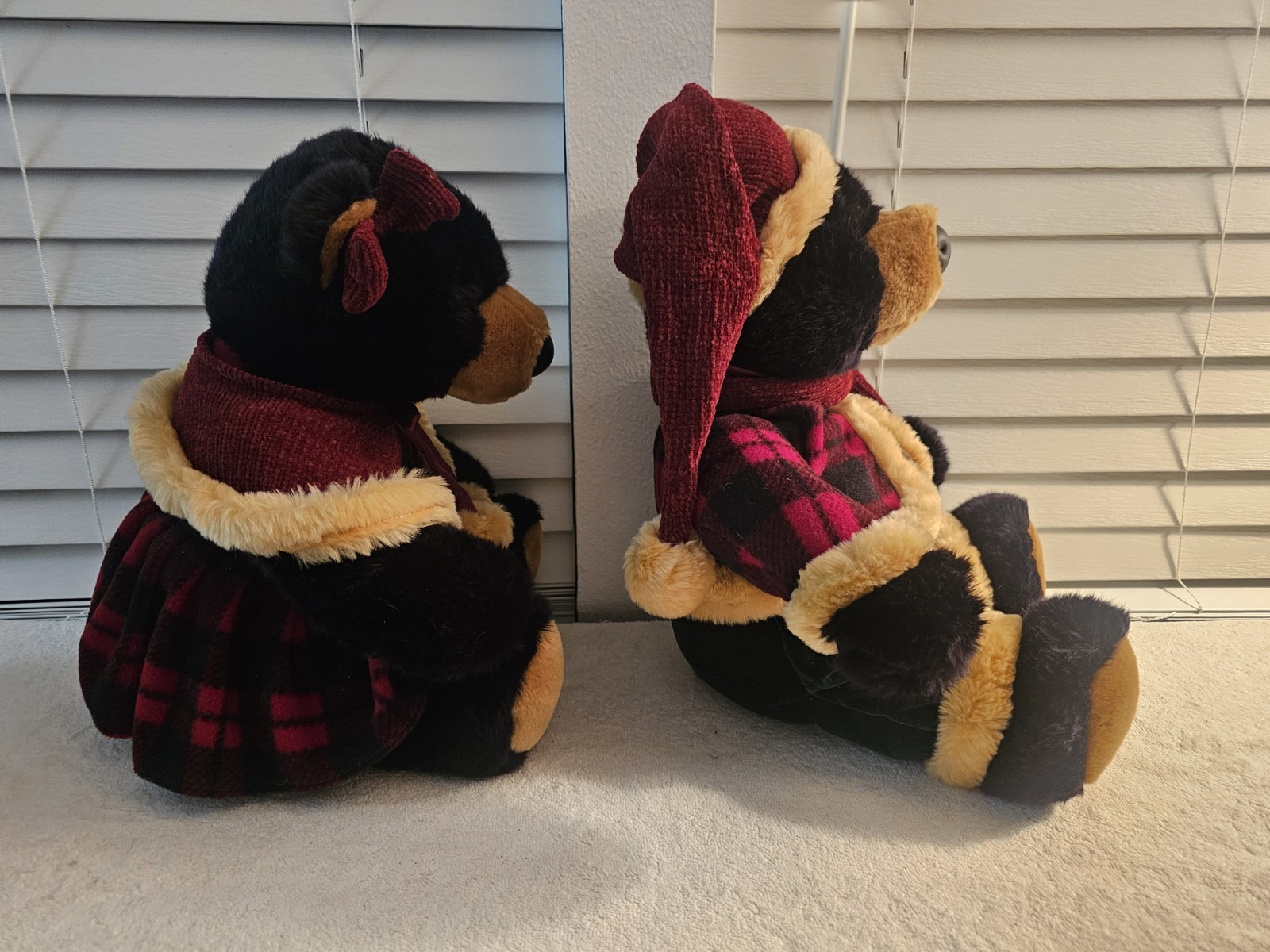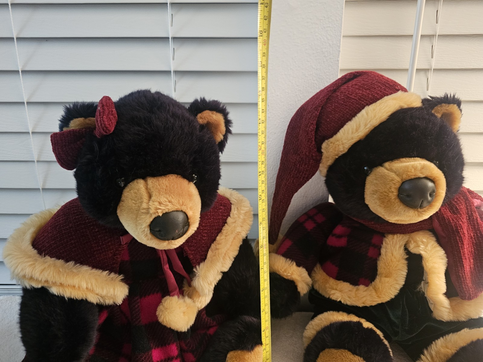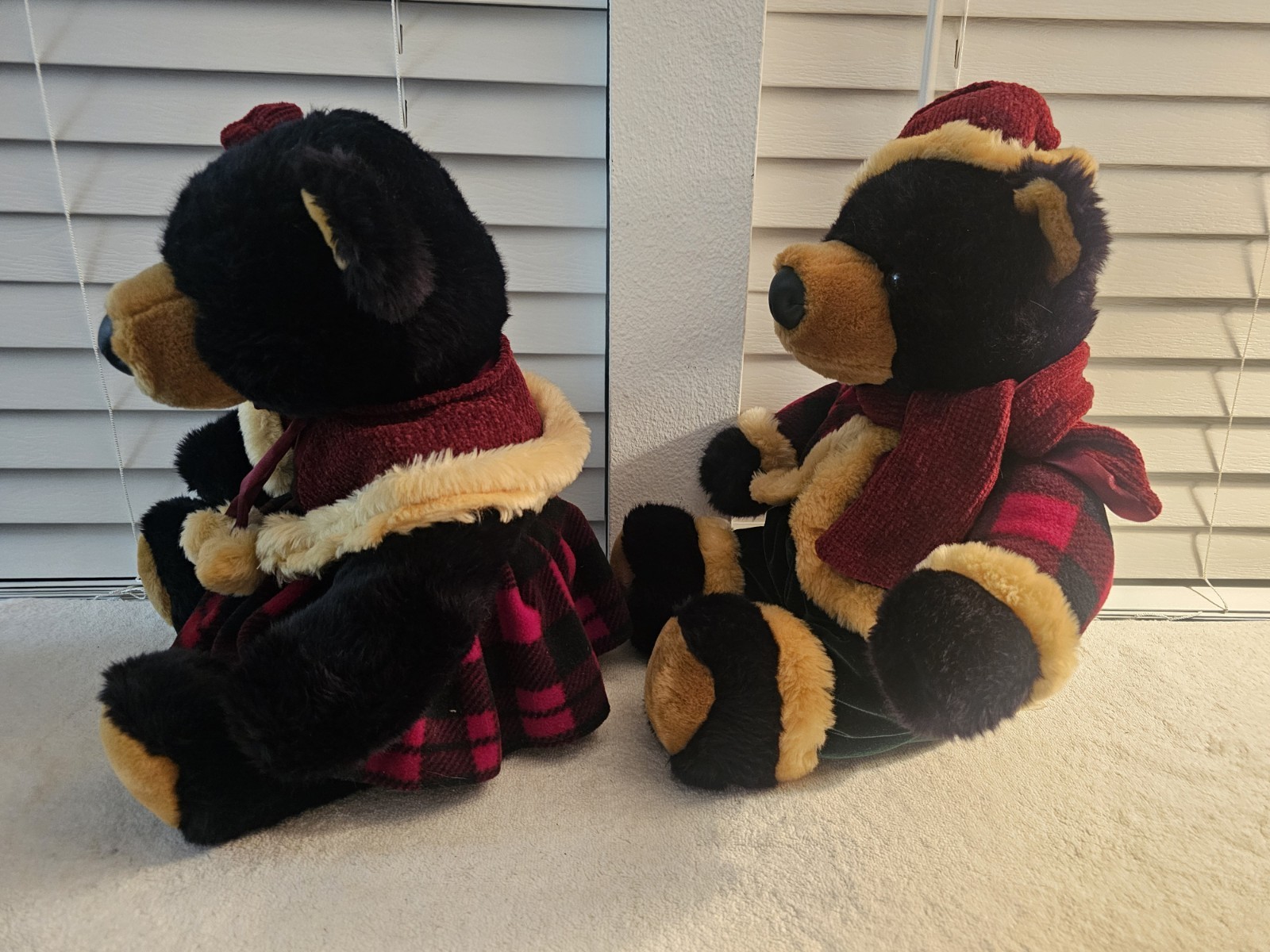 Vintage Dan Dee Christmas Holiday Winter Plush Black Bear Set 15 Sitting