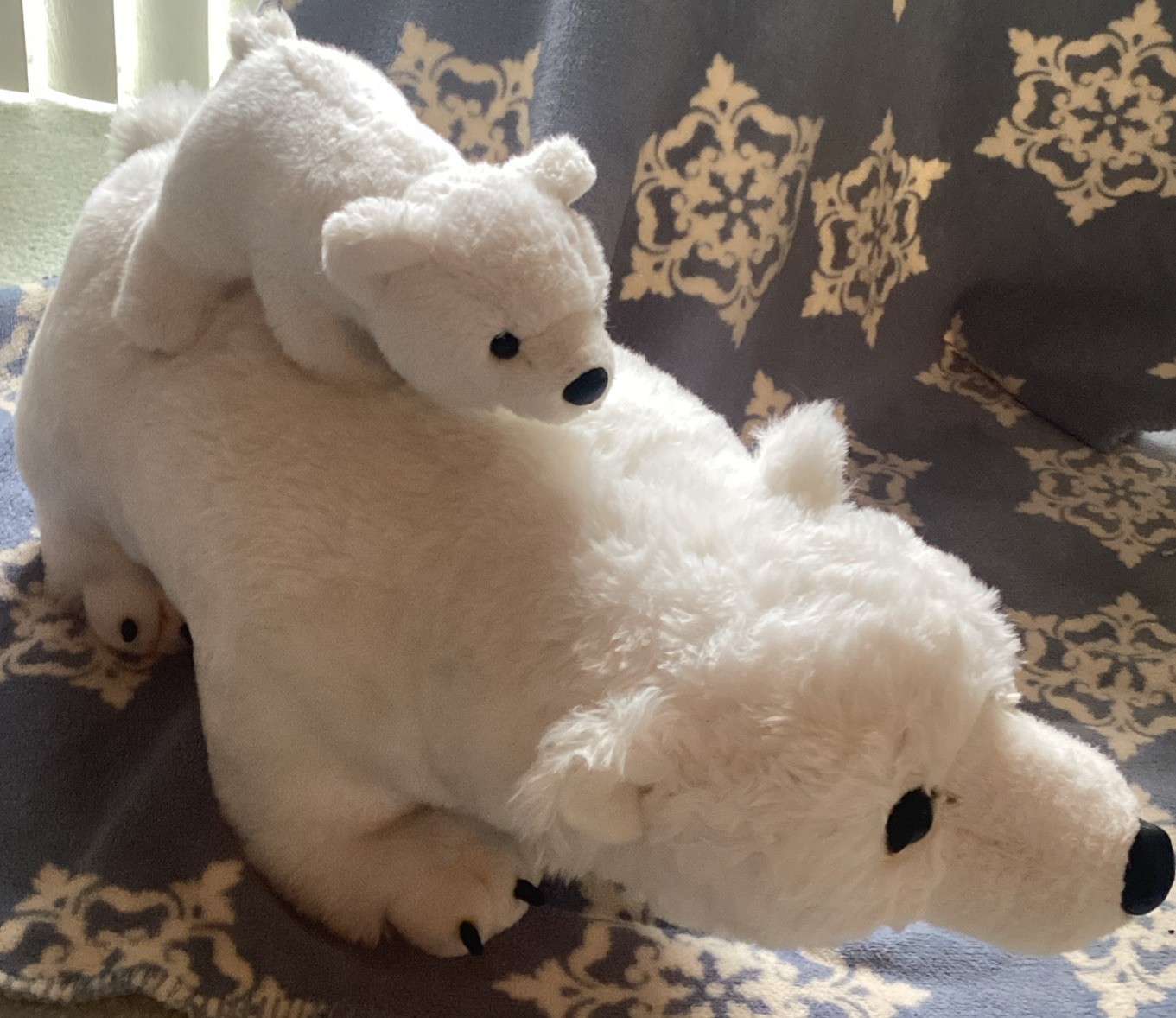 Arctic Alaska Zoo Polar Bear With Baby On Back Stuffed Artic Animal