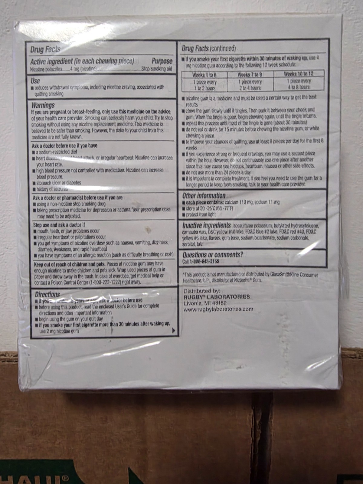 Rugby Nicotine 4mg Gum Pack of 110 - Original Flavor 00536-3030-23 EXP 2026/09