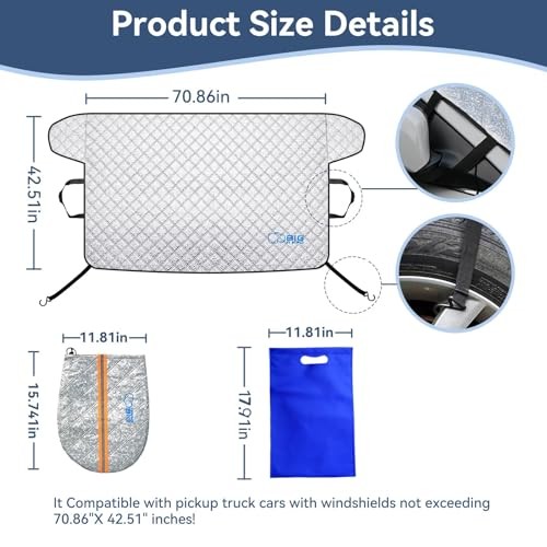 • Windshield Cover for Snow and Ice,Windshield Snow Cover Fit for Pickup Silver