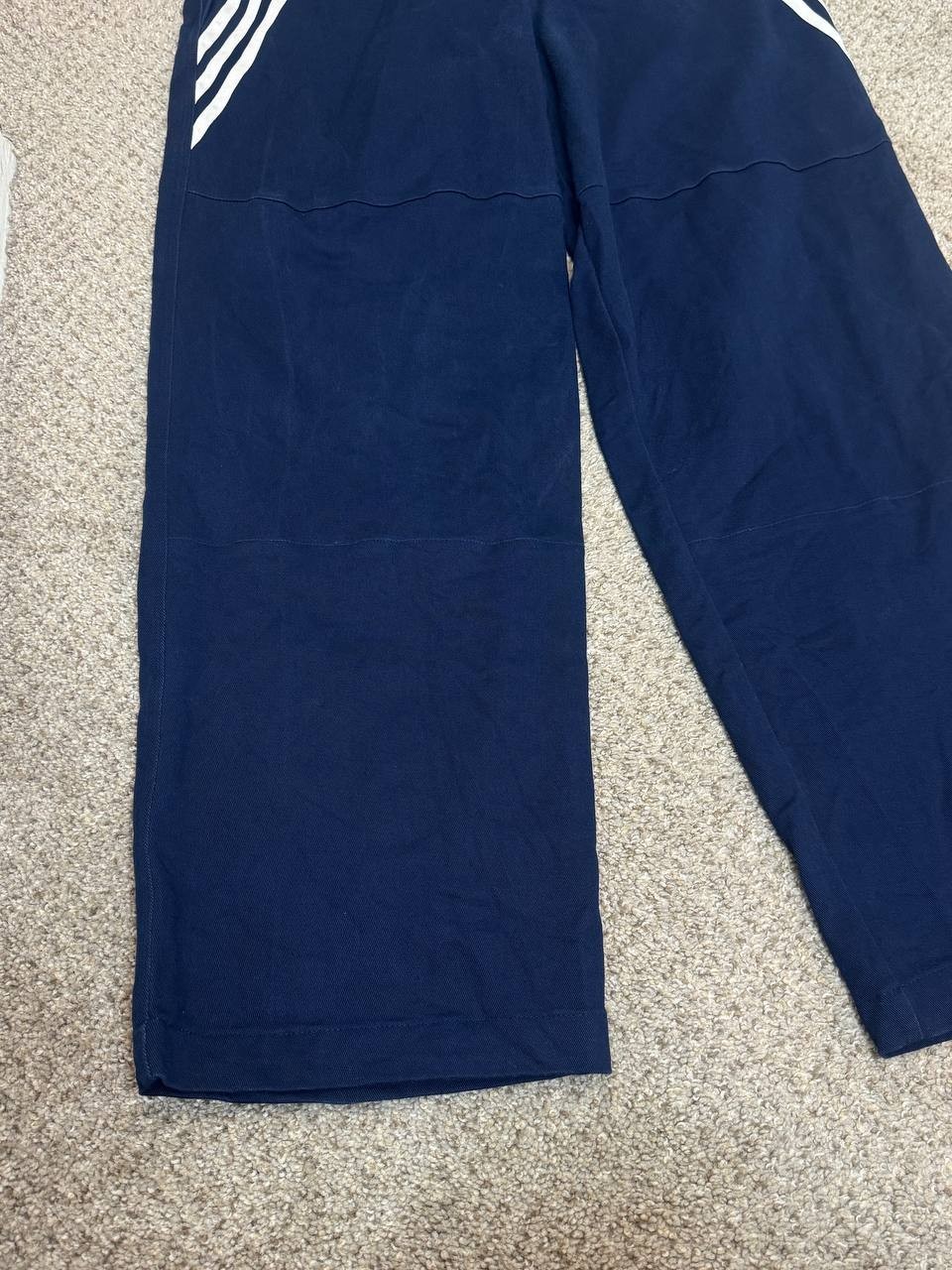 как выглядит Adidas Originals Navy Blue Overalls Size M Trefoil 3-Stripes Jumpsuit Rare фото