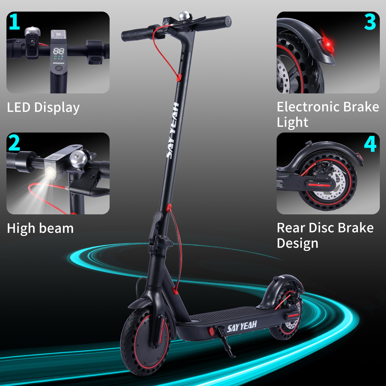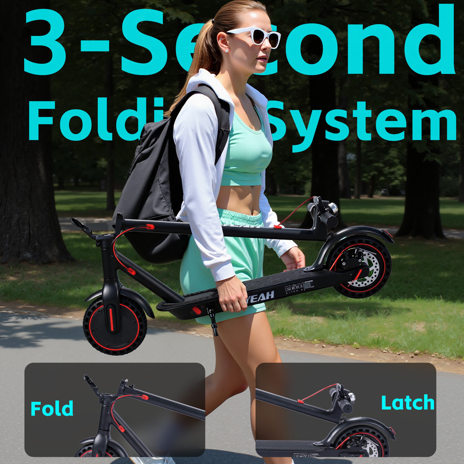 Foldable Electric Scooter, 350W Power, 15-16 Miles Range, 36V