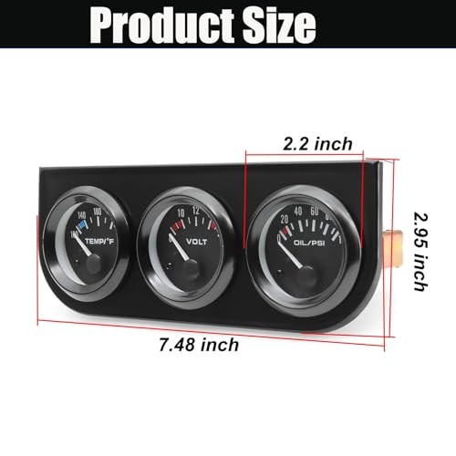 3-in-1 Triple Gauge Kit - Oil Pressure, Voltage Water Temperature Black