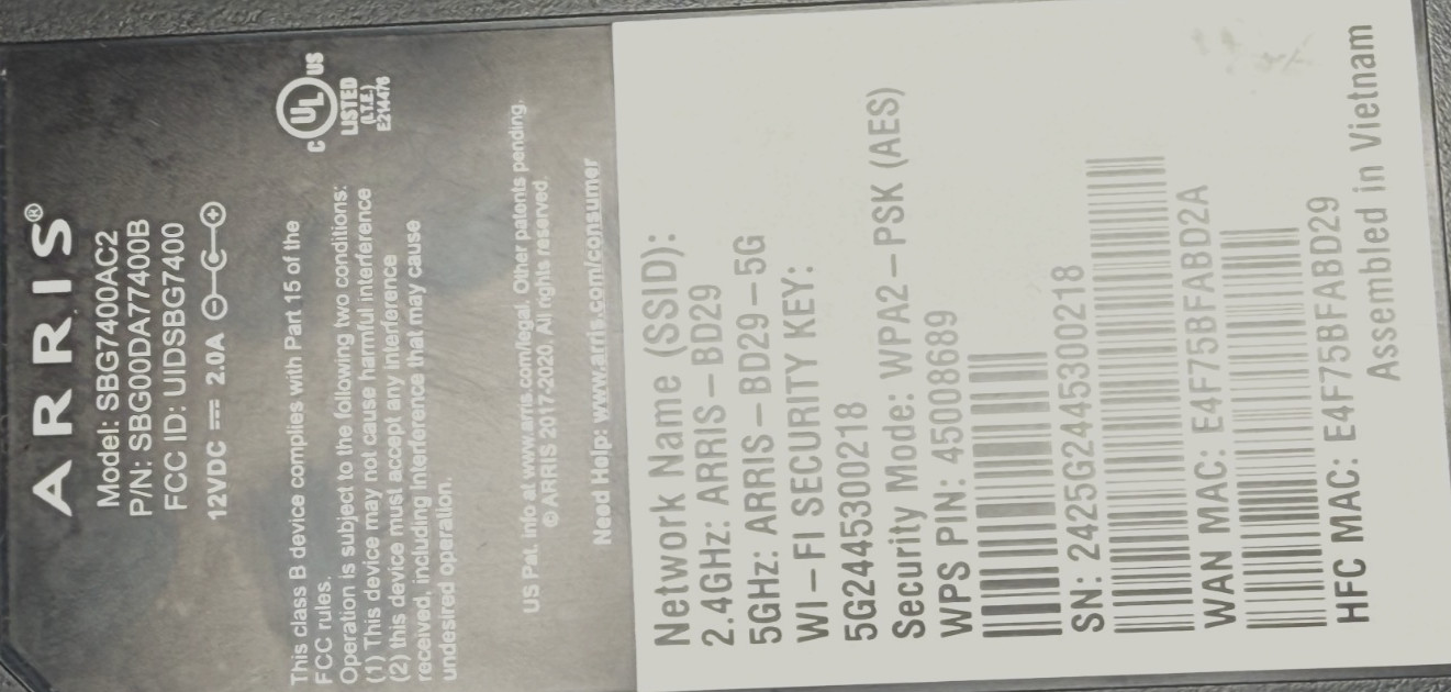 ARRIS SBG7400AC2 DOCSIS 3.0 Cable Modem AC2350 WiFi Router Refurbished