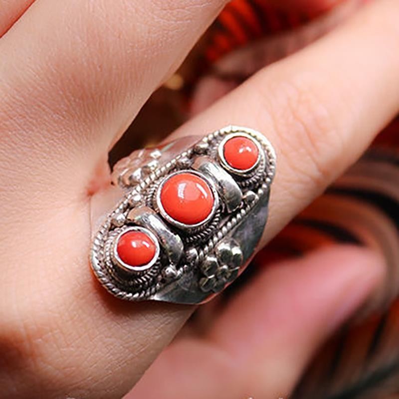 как выглядит Nepalese Enamel Ring Red Glaze Handmade Vintage Ethnic Adjustable Jewelry фото